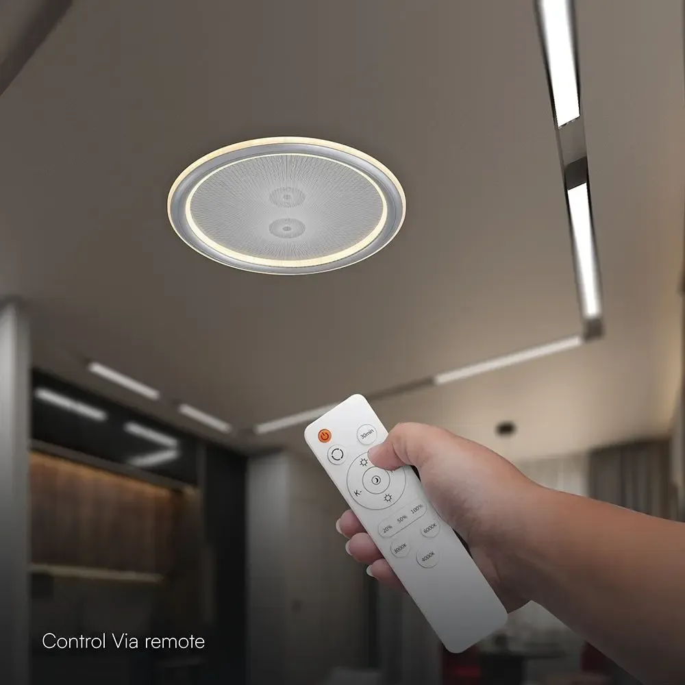 • 3-u-1 stropna svjetiljka dizajnirana za prebacivanje između tri boje pomoću daljinskog upravljača