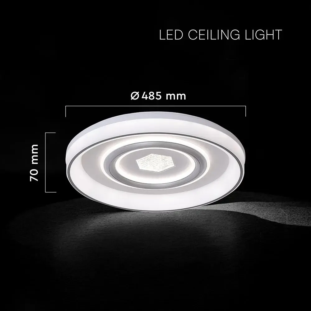 55W LED dekorativna stropna svjetiljka,3u1, daljinski upravljač, dimabilna, bijela , Ø485x70mm