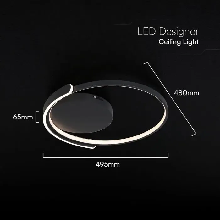70W LED dekorativna stropna svjetiljka,3u1, daljinski upravljač, dimabilna, crna , 495x480x65mm