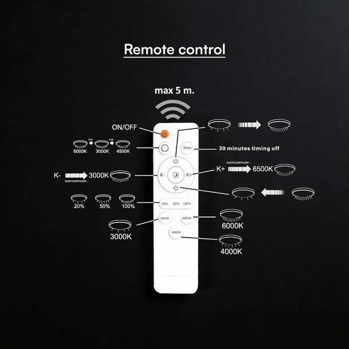 • 3-u-1 stropna rasvjeta dizajnirana za prebacivanje između tri boje pomoću daljinskog upravljača