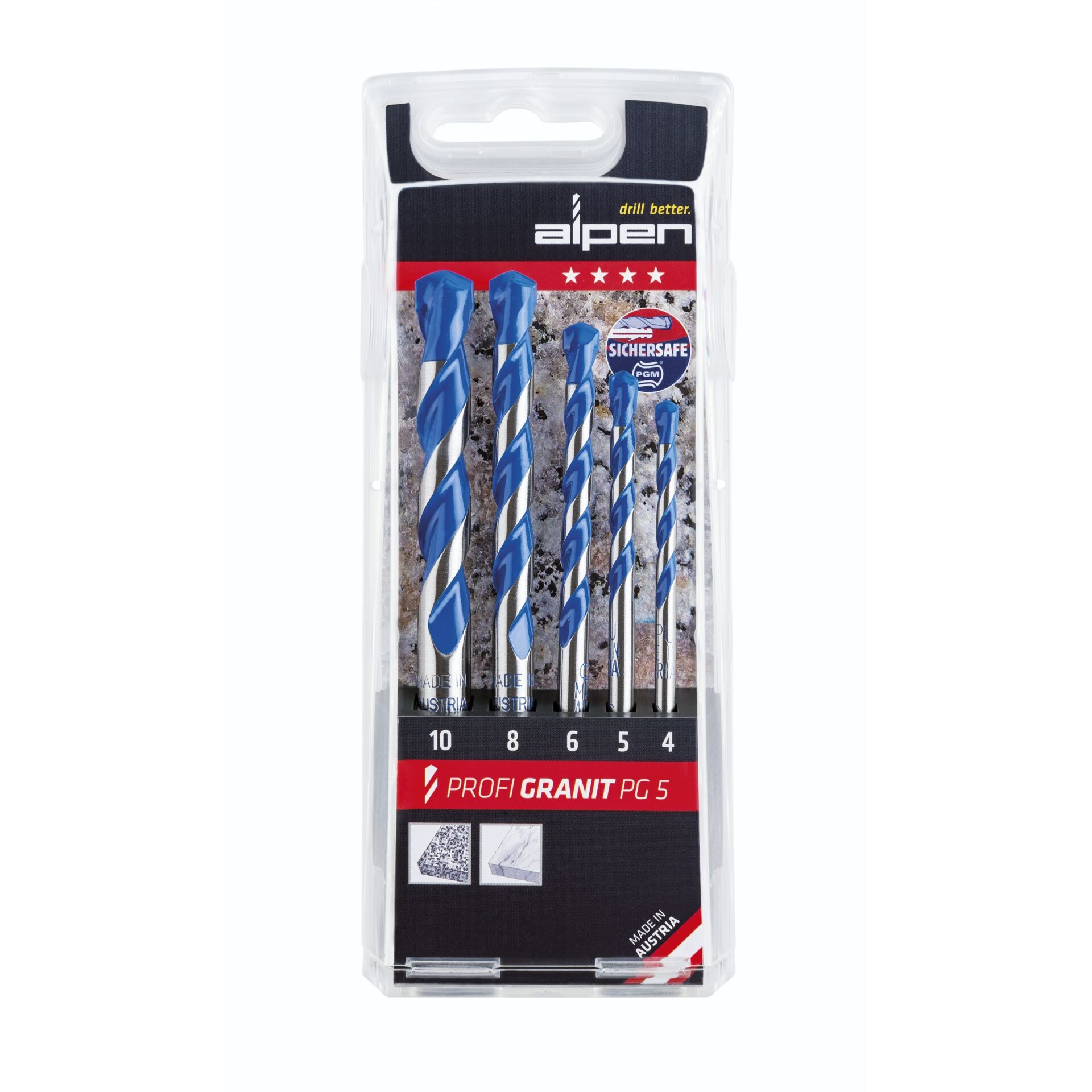Alpen Profi Granit PG 5, granite drill bit set, 4 / 5 / 6 / 8 / 10 mm, 5 pcs.