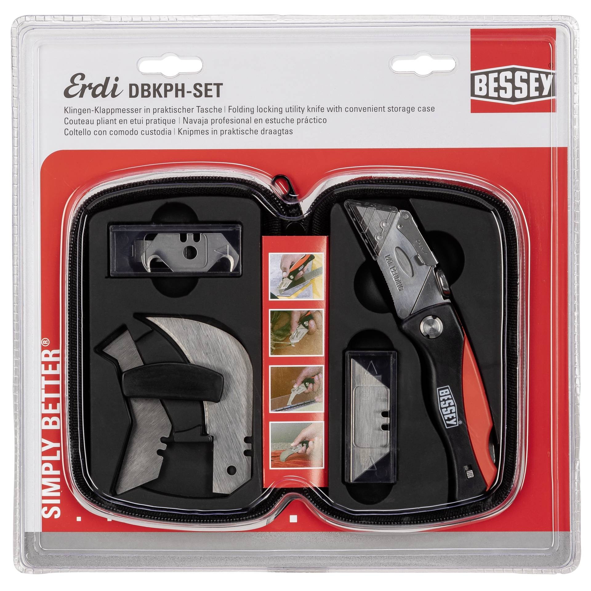Knife with comfortable plastic handle. The set includes four different blades for different materials. The practical case is made of nylon with a zipper.