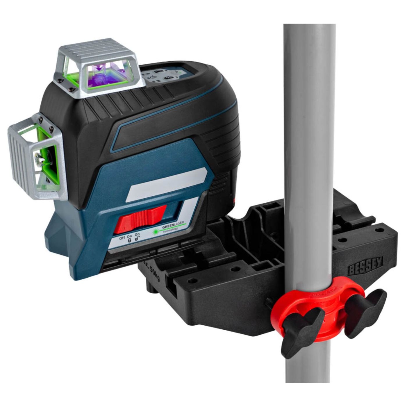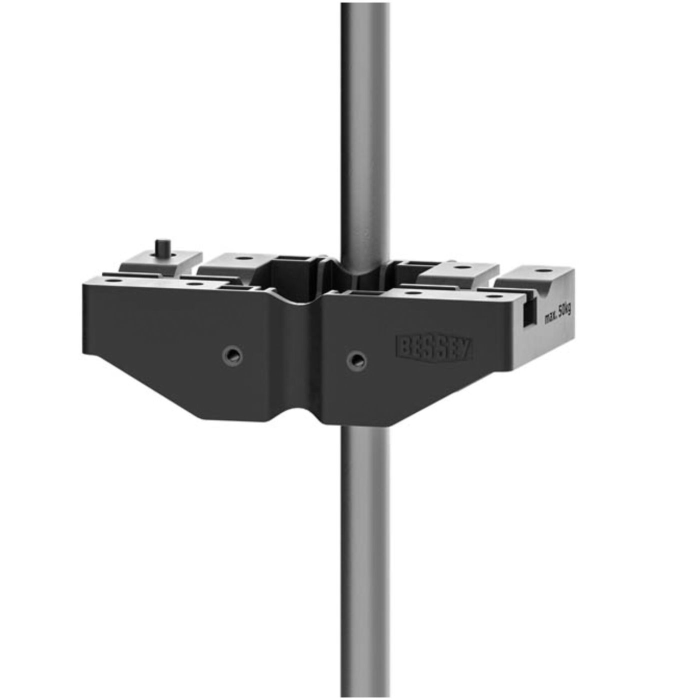 The BESSEY multifunction bracket STE‑MH‑SET is an accessory for ceiling and mounting supports that allows you to securely fix partitions, storage areas or devices such as lasers and cameras. It is mounted tool-free, supports up to 50 kg per holder and is made of reinforced plastic with a non-slip support surface.