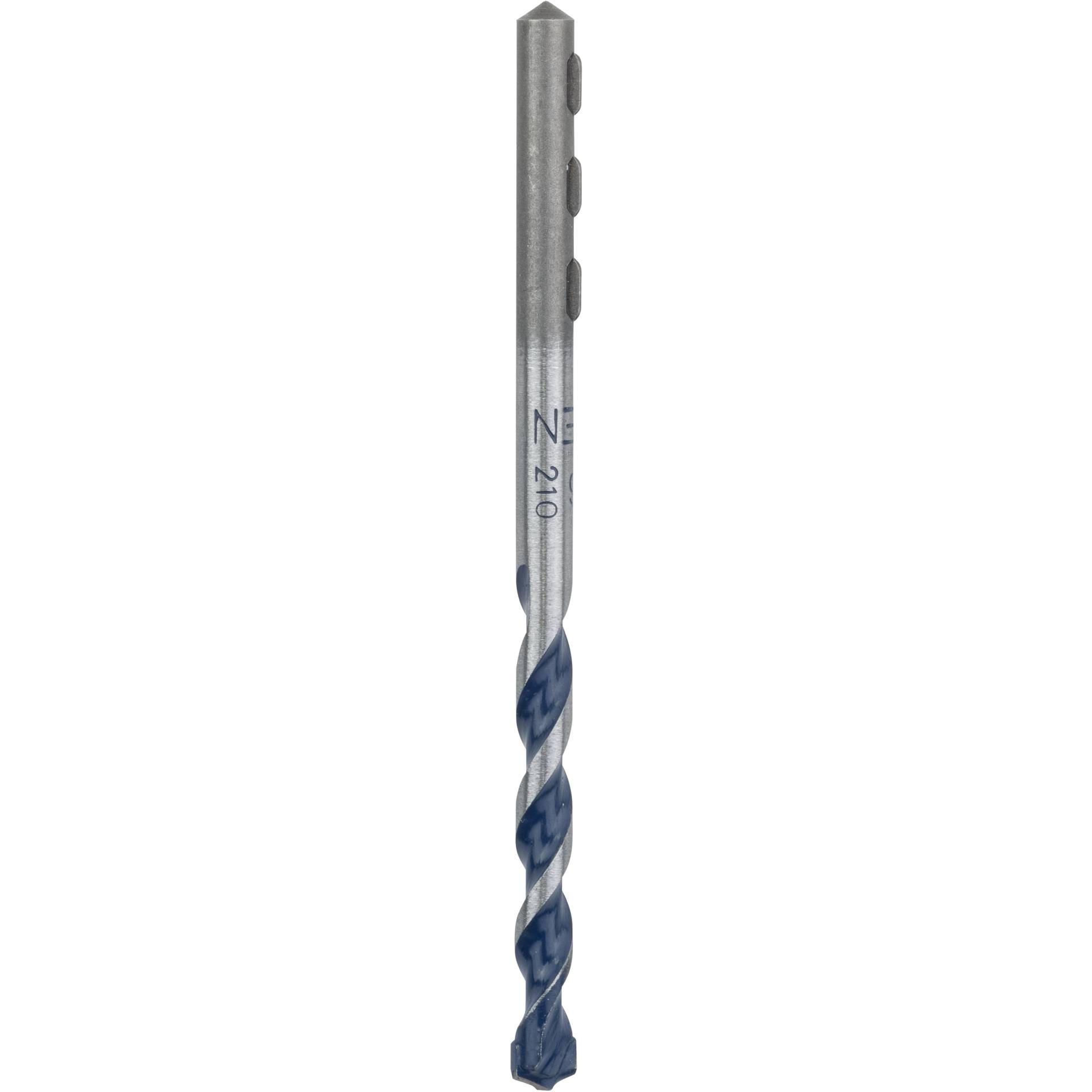 The CYL-5 Drill Bit guarantees extra-long durability when drilling concrete and stone. The combination of a carbide blend developed in-house by Bosch and diamond-ground cutting edges makes the bit extremely wear-resistant. Friction on the flute from drilled material is notably reduced thanks to a 2-flute vario design with a short, variable incline providing good dust removal and wear reduction. The Bosch Power Grip Shank System enables 100% power transfer from machine to drill bit. This allows a direct use of power for drilling with no power loss and thus less wear. For use when drilling holes for fixings in concrete, natural and artificial stone. It is compatible with cylindrical shank systems for all corded or cordless impact drills.