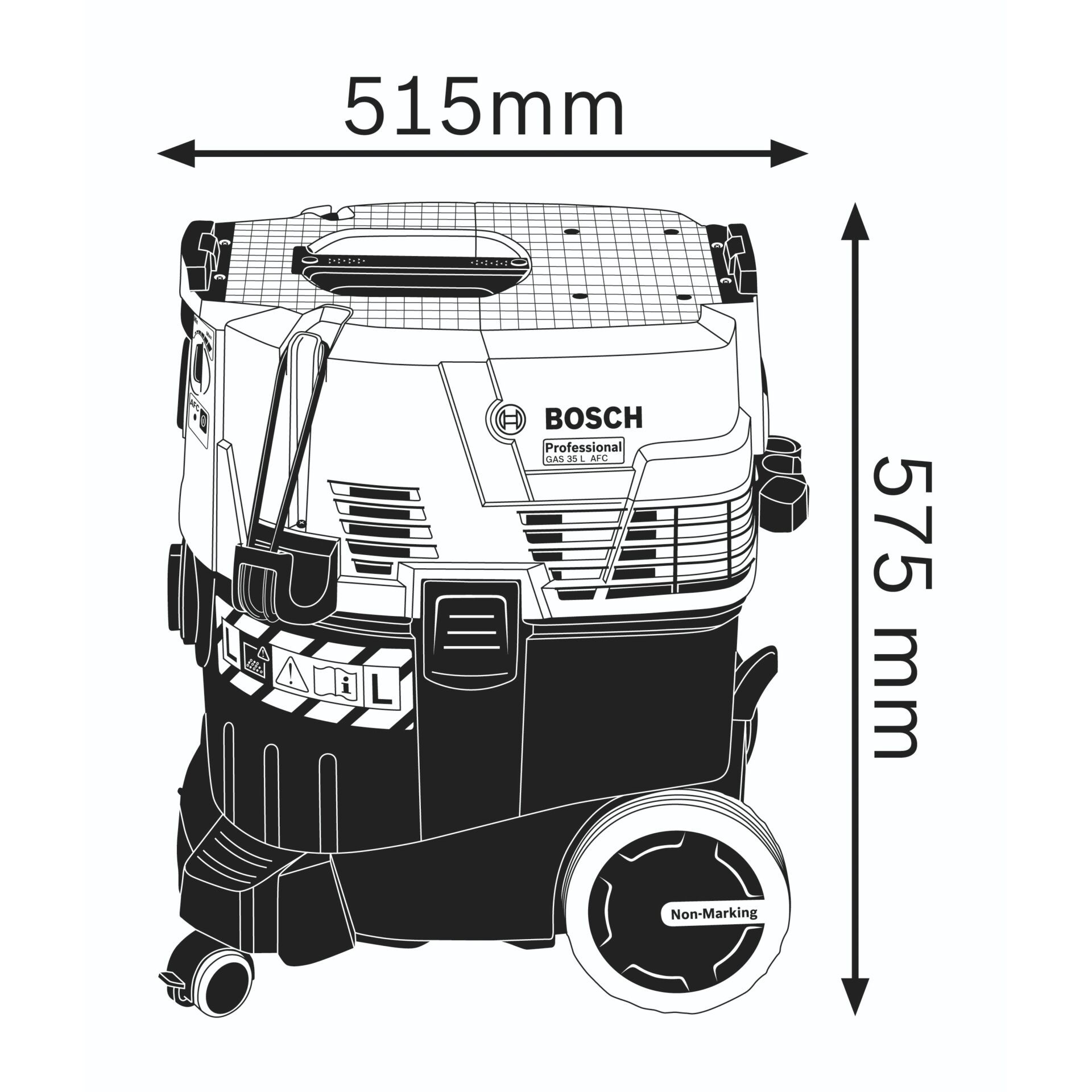 Der GAS 35 L AFC Professional ist Boschs Nass- und Trockensauger der Staubklasse L mit automatischer Filterreinigung, Seine automatische Filterreinigungstechnologie gewährleistet eine anhaltende, kraftvolle Saugleistung für sehr schnellen Arbeitsfortschritt,  Eine extrem leistungsstarke 1,380-W-Saugturbine mit einem sehr hohen Vakuumdruck von 254 mbar liefert hervorragende Saugergebnisse, Dieser Sauger eignet sich zum Nass- und Trockensaugen, Das Gerät ist kompatibilbel mit dem Bosch Click & Čisti sustav,