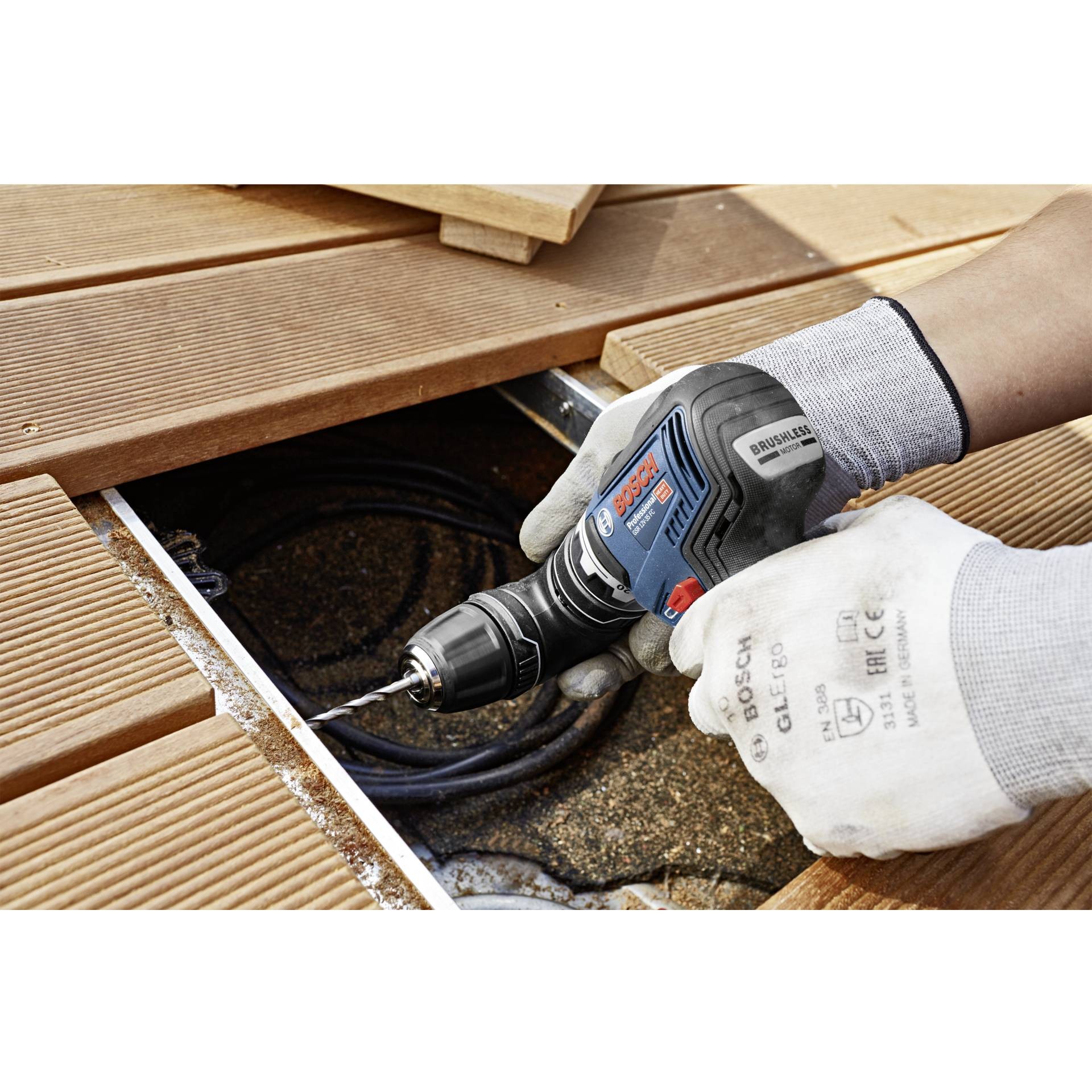 This tool is perfect for drilling and screwing in wood (32 mm) and steel (10 mm). It is compatible with all Bosch Professional 12V batteries and chargers.