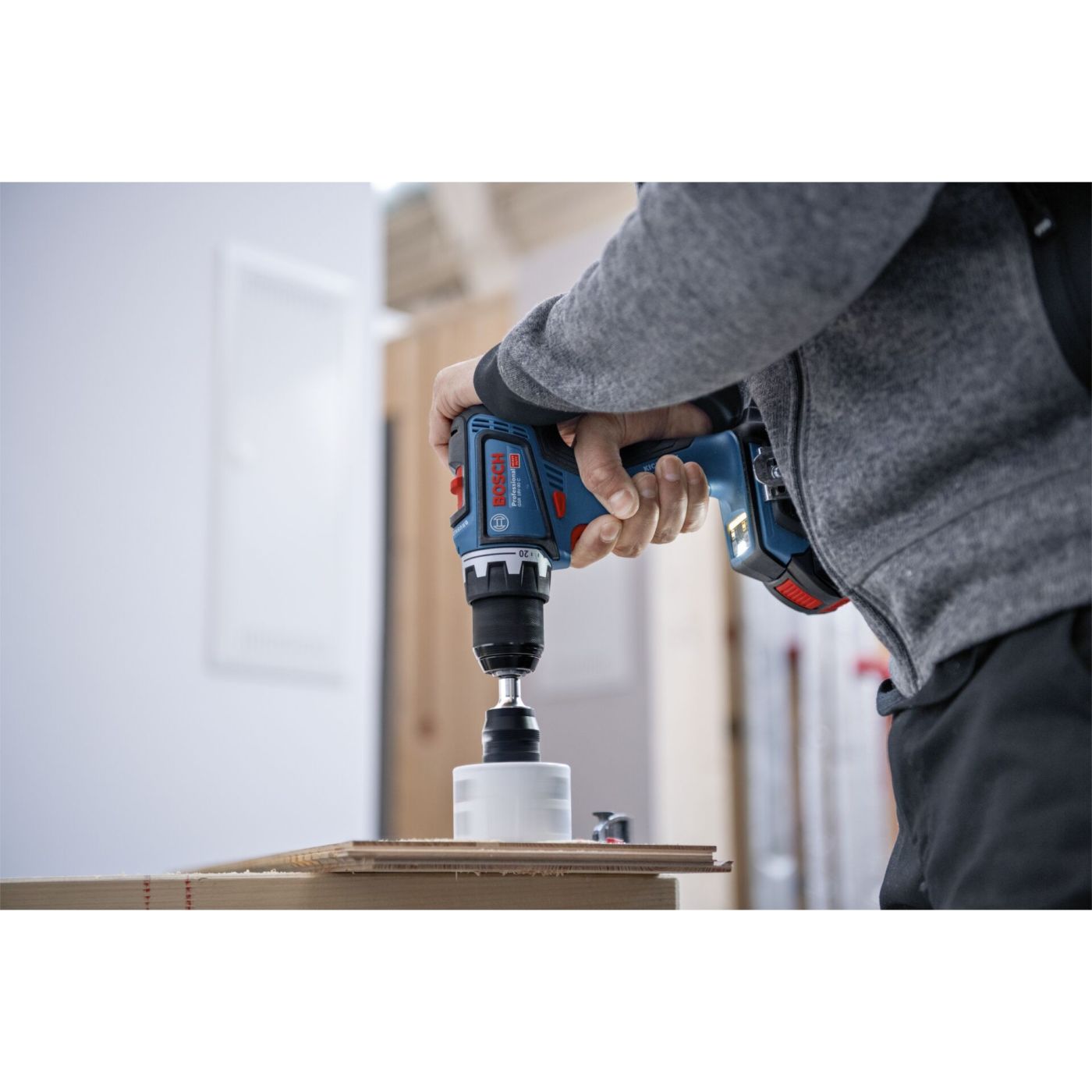 GSR 18V-90 C Professional je snažna akumulatorska bušilica-odvijač s motorom bez četkica koji pruža vrhunske performanse sa 64 Nm i 2100 okretaja u minuti. Njegova kompaktna duljina glave od 163 mm pruža savršenu praktičnost alata. Robusna metalna stezna glava od 13 mm osigurava izvrstan prijenos okretnog momenta za svaki posao. Bušilica-odvijač ima vrlo visoku razinu kontrole alata. za povećano zdravlje korisnika i zaštitu alata: HMI nudi preklopivu kontrolu povratnog udara kako bi se smanjio rizik od iznenadne reakcije rotacijskog momenta u scenariju blokiranja, preklopna precizna spojka zaustavlja poništavanje nakon što se postigne unaprijed postavljena razina momenta i time smanjuje habanje spojke i rezultirajuću buku,