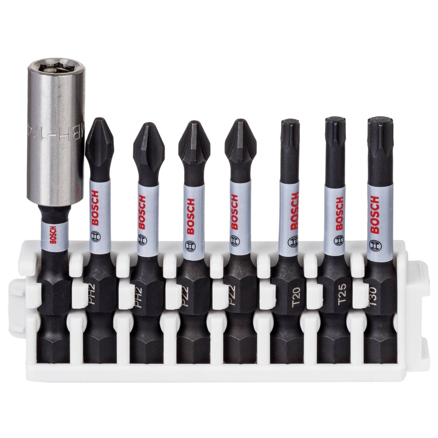 • Set-Inhalt: PH2 (2x) / PZ2 (2x) /T20 (1x) / T25 (1x) /T30 (1x), 1 Bit-Halter (60 mm)