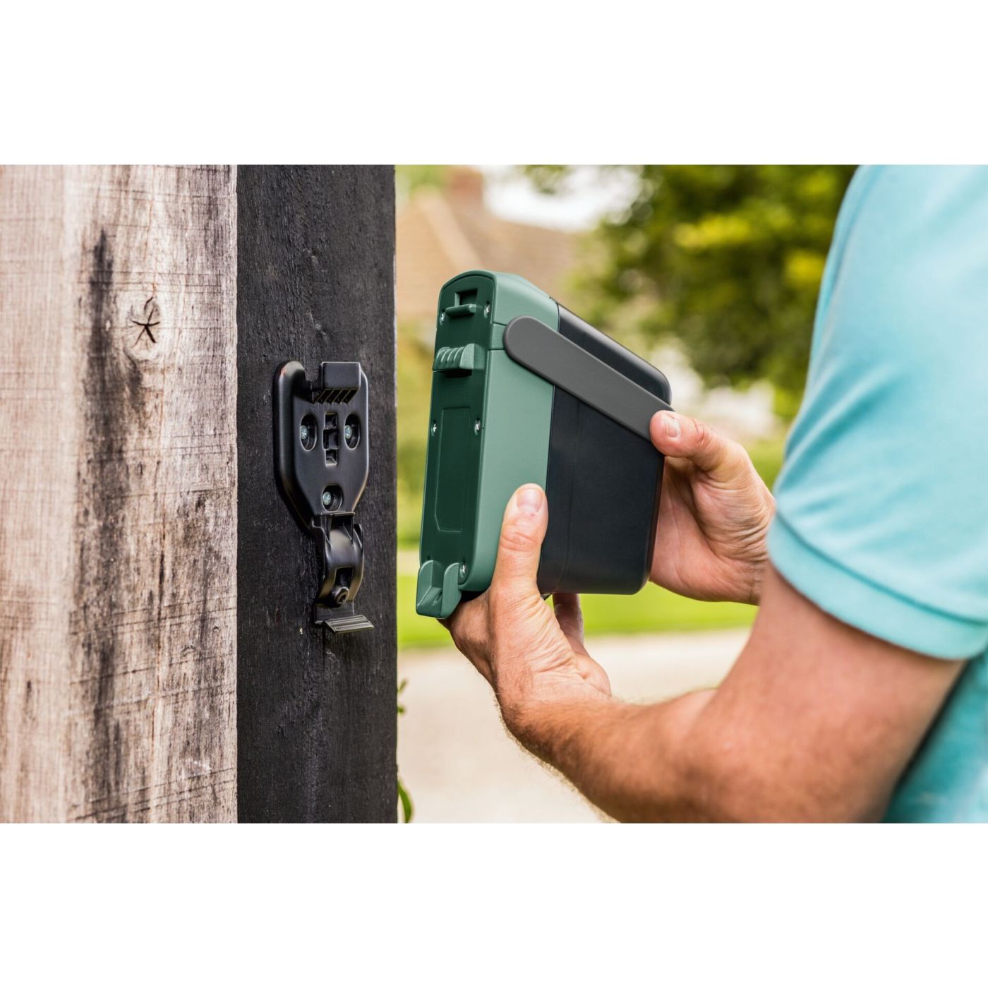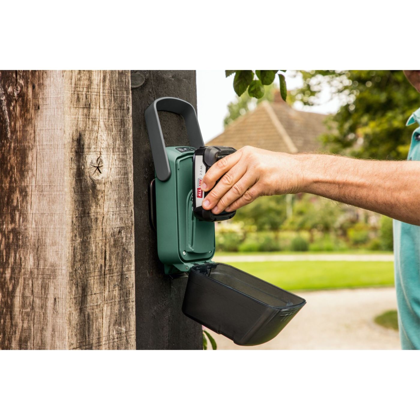 Bežična GardenPump 18 jednostavno radi sa svim vrstama spremnika za kišnicu i osigurava brže i učinkovitije zalijevanje vrta. Prvo, bežična upravljačka jedinica se praktično pričvršćuje izravno na spremnik ili montira na zid. Zatim se pumpa za kišnicu jednostavno uroni u spremnik. Zatim se spajaju vrtno crijevo maksimalne duljine 25 metara i pištolj za prskanje.