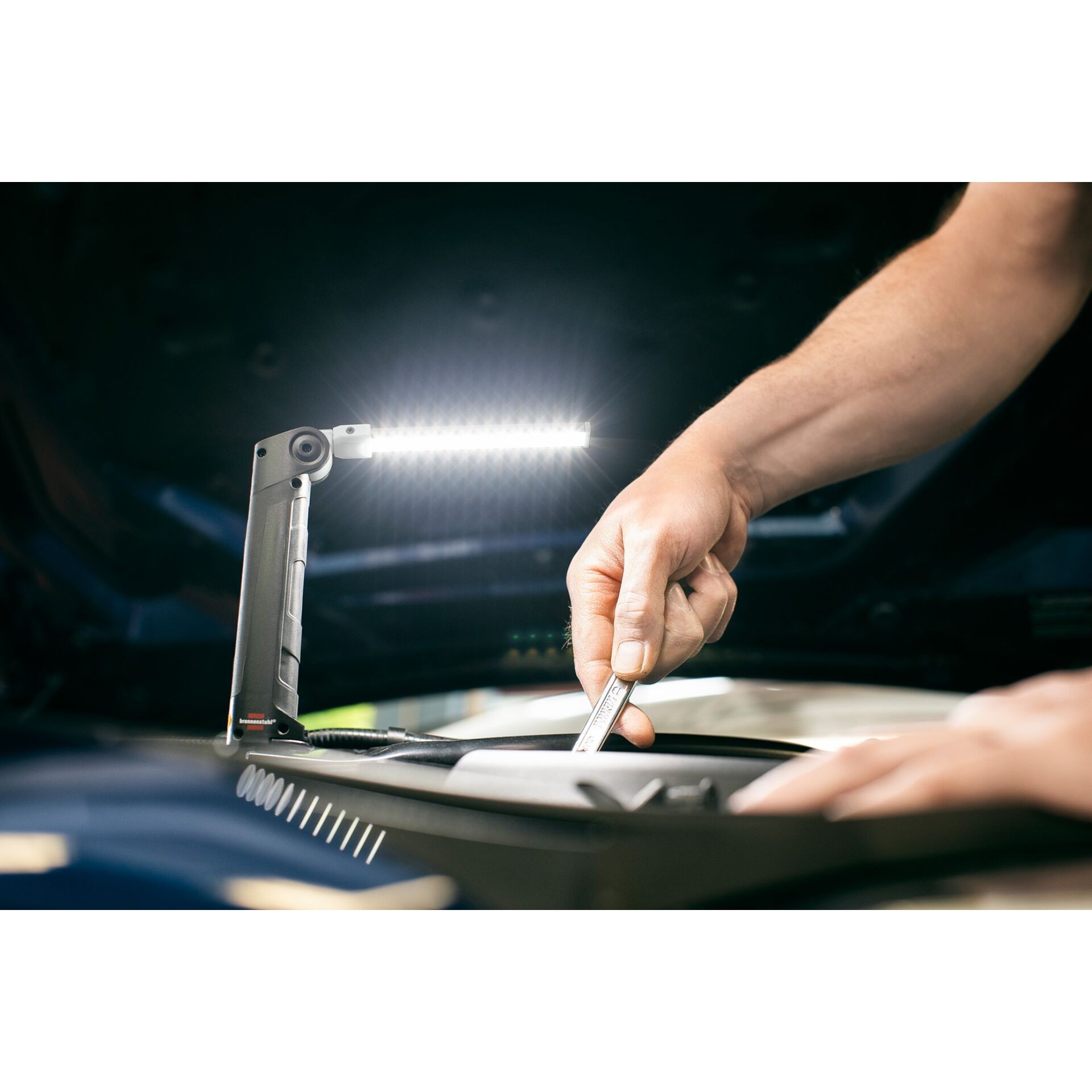 • The LED inspection light head with battery can be bent and rotated - it folds into a pocket size