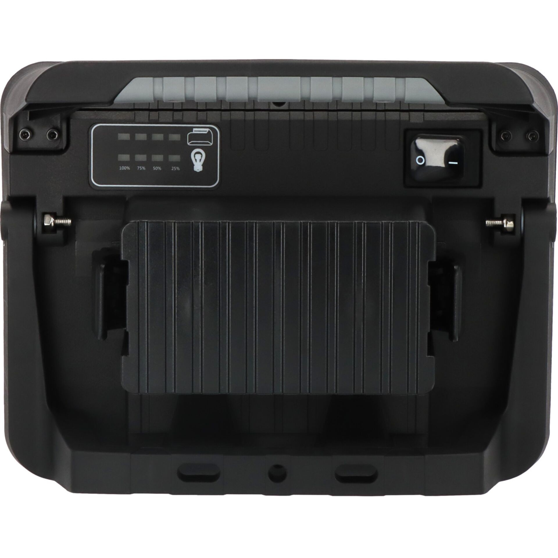 Thanks to the Brennenstuhl Multi Battery 18 V system, the extremely robust and bright Professional Multi Battery LED cordless spotlight with 30 W output is compatible with various 18 V rechargeable batteries (different Ah classes) from the eleven power tool manufacturers Bosch Professional, Dewalt, Einhell, Fein, Festool, Flex, Hikoki, Makita, Metabo CAS, Milwaukee and Würth. Regardless of which battery system is already in use, the interface technology enables maximum flexibility and allows you to use the battery system of your choice. The appropriate adapter can be fitted to the interface in just one easy step. The LED construction spotlight with 3150 lm offers optimum light distribution thanks to wide-area illumination with reduced glare. The impact-resistant construction spotlight can be used flexibly and as required, whether standing upright, lying flat for large-area illumination or mounted on a tripod. The impact-resistant work spotlight with enormous luminosity thanks to built-in SMD LEDs also has a battery status indicator for the remaining energy of the battery used (the batteries must be charged externally) and a protection system for Power Tool batteries. This protects the batteries used against deep discharge and overheating (caused by high load currents).