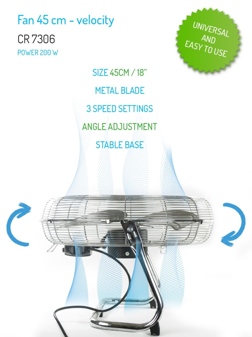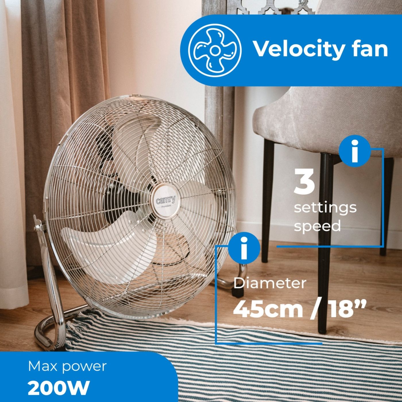 CAMRY Ventilator profi, metalni 45 cm – ventilator velike brzine 110- 200w, 116 m³/min