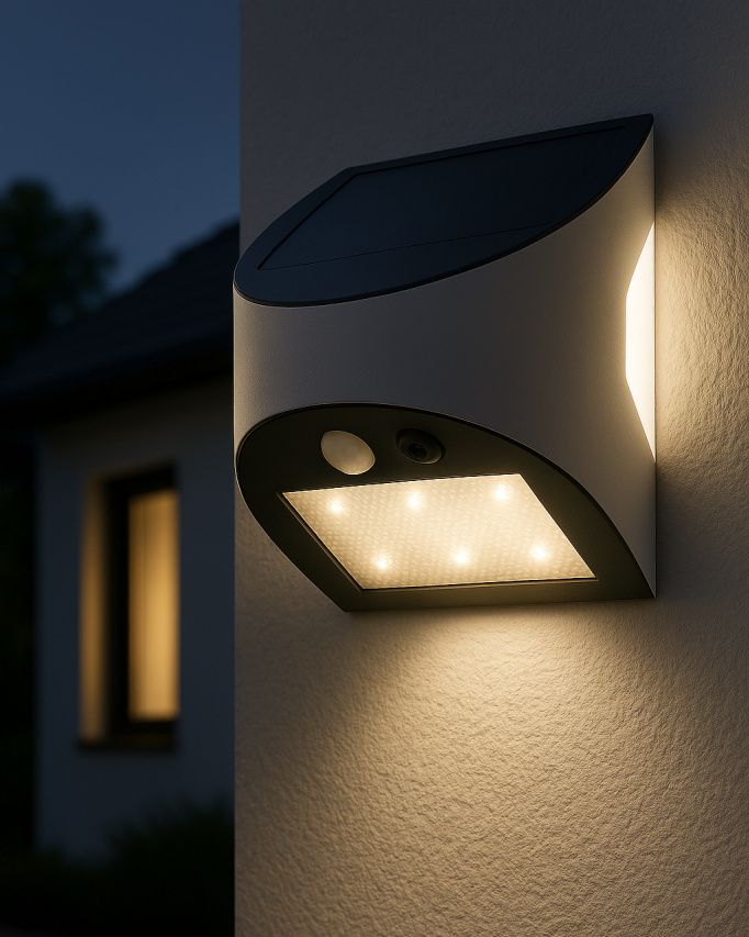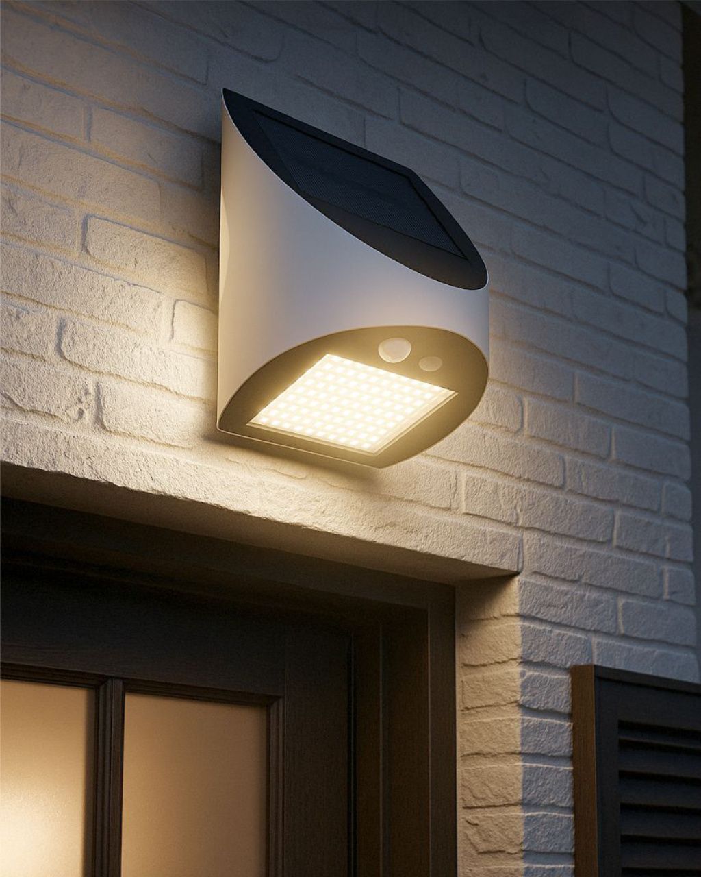 Dekorativna LED solarna zidna svjetiljka sa senzorom 3W, 4000K, IP54, bijela