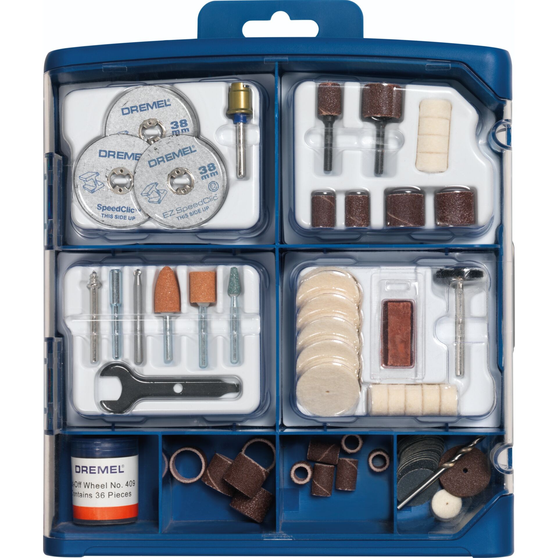 The 100-piece Dremel Multipurpose Accessory Set contains 100 high quality original Dremel accessories, including EZ SpeedClic accessories for quick and easy change of accessories. With this accessory set you can handle a variety of applications in various materials. Store your Dremel accessories conveniently in the carry case.