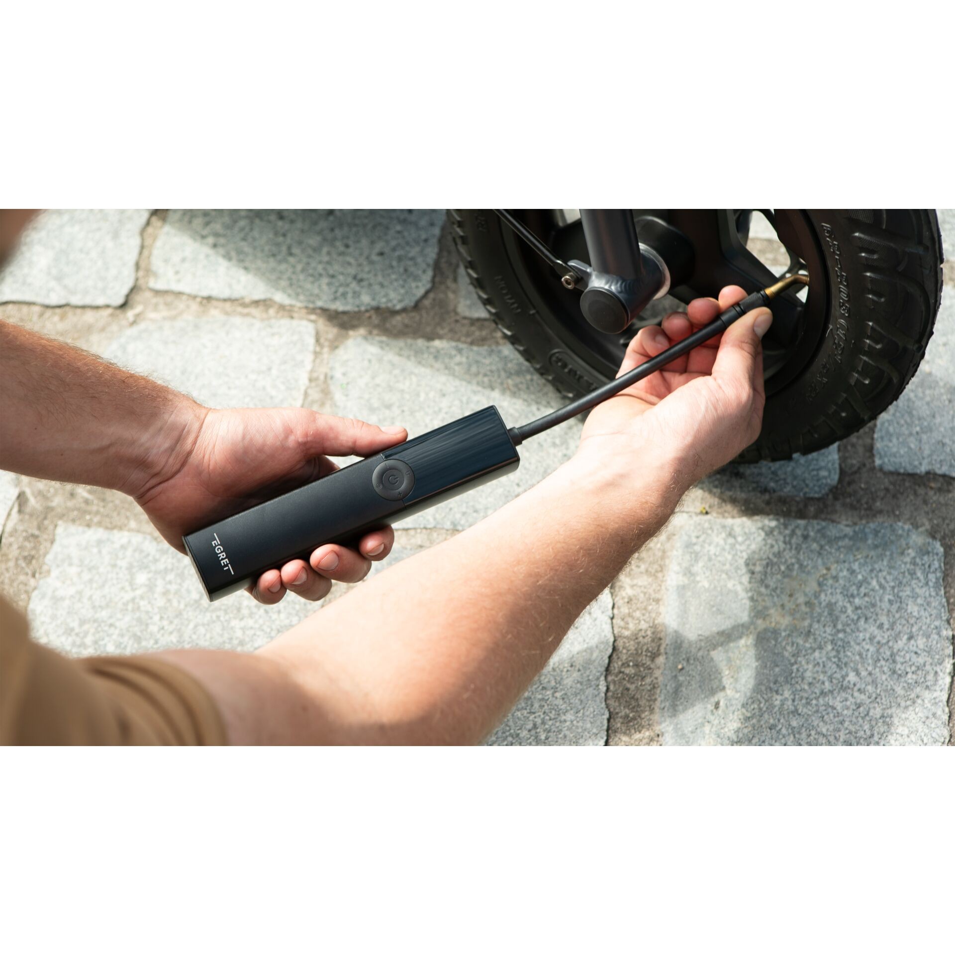Small and compact, the Smart Air Pump electric air pump is the perfect companion for long e-scooter tours or regular air pressure checks. You should check the air pressure regularly. Even a tight tube loses pressure over time. You can find the recommended air pressure in the operating instructions for your Egret.