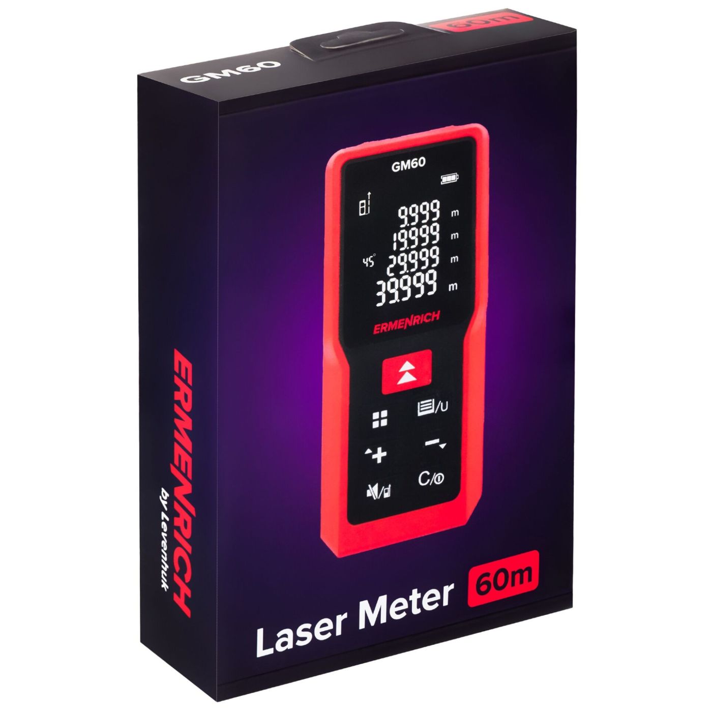 Ermenrich Reel GM60 laserski mjerni uređaj je kompaktan i svestran instrument idealan za sve vrste inženjerskih, građevinskih i renovacijskih radova. Ne može mjeriti samo udaljenosti i duljine objekata unutar 60 metara, već i druge parametre poput kutova, površine i volumena. Jedna od korisnih značajki je Pitagorin teorem. Izvodi neizravna mjerenja izračunavanjem željene vrijednosti iz dva međumjerenja. Ovo je izvrsna metoda za mjerenja gdje laserom nije moguće pogoditi točnu ciljnu točku.