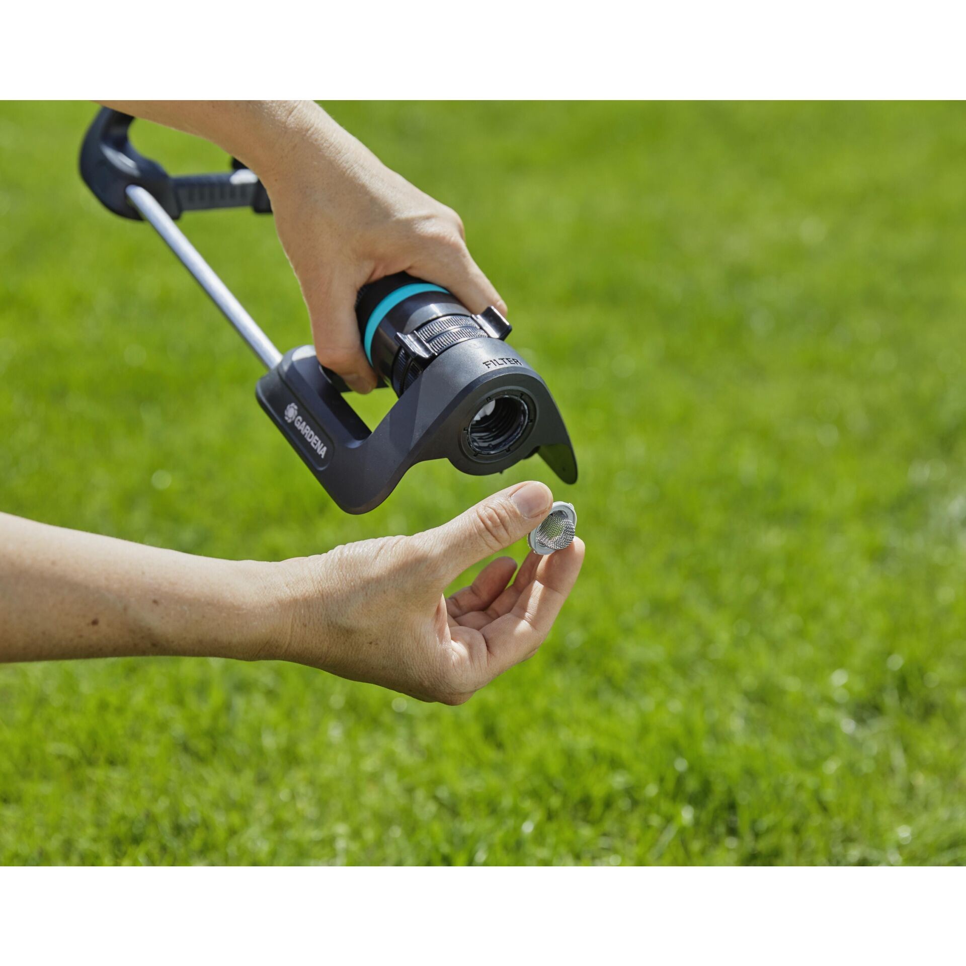 EcoLine Oscillating Sprinkler's removable built-in filter can be quickly cleaned under running water. A cleaning needle (included) can be used to deal with any limescale build-up.