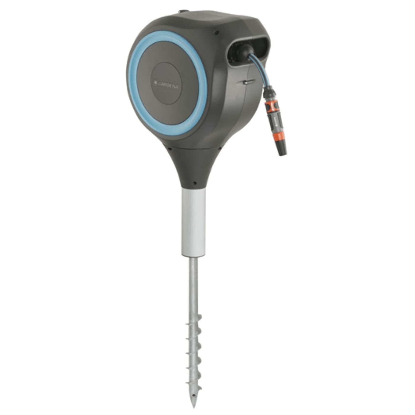 Crijevo se automatski zaključava na željenoj duljini zahvaljujući praktičnim kratkim točkama zaključavanja. Laganim povlačenjem, brava se otpušta i zahvaljujući opruzi, crijevo se automatski i ravnomjerno namotava. Tehnologija RollControl osigurava da je uvlačenje sporo i kontrolirano. Integrirana vodilica crijeva osigurava ravnomjerno uvlačenje bez savijanja ili zapetljavanja crijeva.