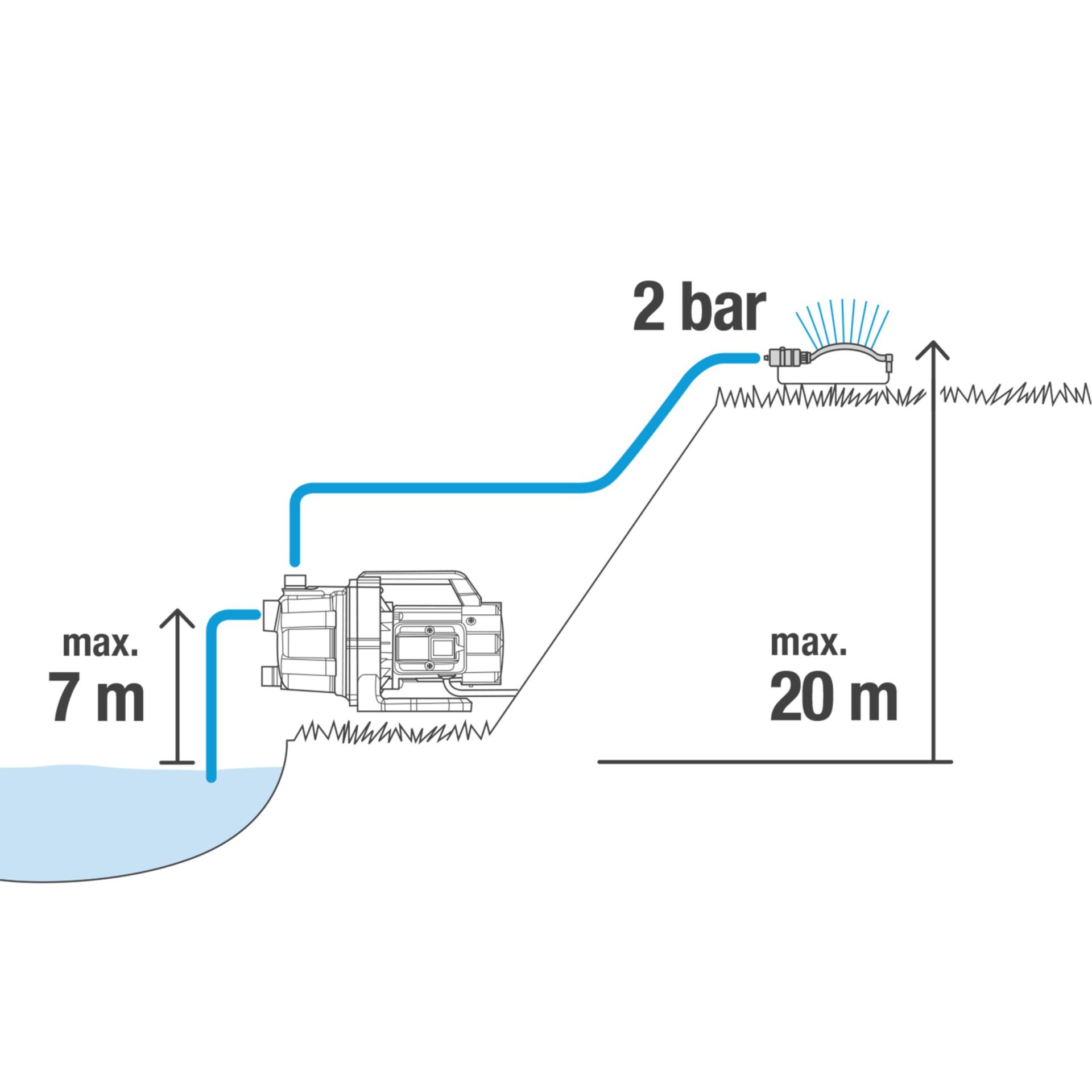 The compact and robust Garden Pump 3700/4 BASIC from GARDENA is a powerful and at the same time energy-efficient model that is suitable for various pumping tasks in your garden. Regardless of whether you want to water your plants, increase the water pressure, drain the garden pond or pump groundwater, tap water and rainwater - you can rely on this pump. The high delivery volume of the 3700/4 BASIC garden pump helps you to do your work quickly and efficiently. The electric pump is easy to operate and offers a high self-priming height (7 metres) as well as a high pressure (4.1 bar) with a flow rate of up to 3700 l/h. The pump has a long service life. The pump has a high durability due to self-protecting technologies such as the thermal protection switch, which prevents the motor from being overloaded. The stainless steel shaft increases the service life as it is protected against rust. Thanks to the large filling openings, filling and emptying is easy and the ergonomic handle ensures that the garden pump is comfortable to carry. With the practical drain plug, you drain the residual water so that the device is protected from possible frost damage in winter. In addition, the pump has a stable and safe stand on the ground. Your neighbours will also be pleased, because the garden pump 3700/4 is quiet and vibration-free thanks to the high-quality and stable cast iron housing. The 3700/4 BASIC garden pump is a versatile multi-purpose pump with high performance that facilitates work in the house and garden by increasing water pressure. It is an affordable option for simple pumping jobs that occasionally occur around the house.