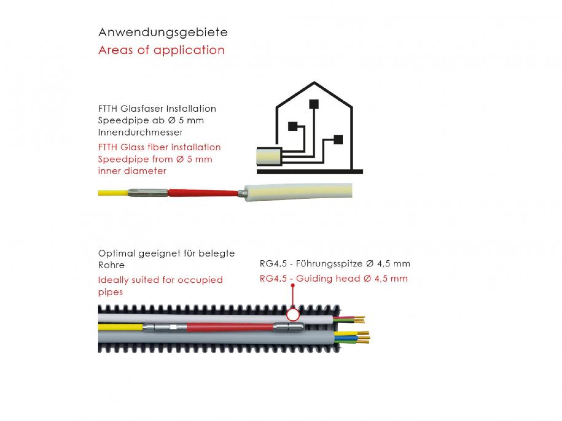 • S maksimalnim promjerom od samo Ø 4,5 mm, idealan je za naknadnu ugradnju zauzetih cijevi ili polaganje optičkih kabela (FTTH - Fiber To The Home).