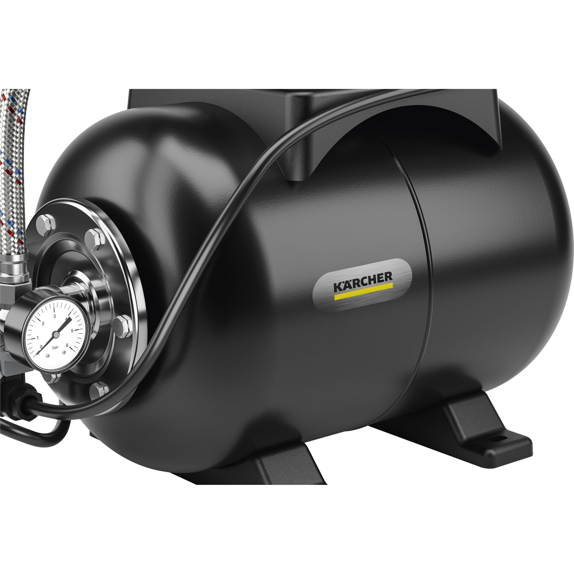 The BP 4.900 Home pump provides reliable, fully automatic water delivery for domestic use. It provides pressure wherever you want to use it, for example to supply a washing machine or a bathroom. In proven Kärcher quality, the powerful BP 4.900 Home provides water from alternative sources such as wells or tanks. Particularly practical: The home pumps switch on and off automatically as required. The extensive pump equipment includes a non-return valve, the integrated pressure indicator, the 24-liter pressure compensation tank and thermal protection. The integrated thermal protection provides additional safety in an emergency: the pump switches off automatically as soon as it runs dry. Thanks to stainless steel components, the pump is also extremely durable. And with support feet that can be attached to the floor with screws, a stable stand is guaranteed at all times.