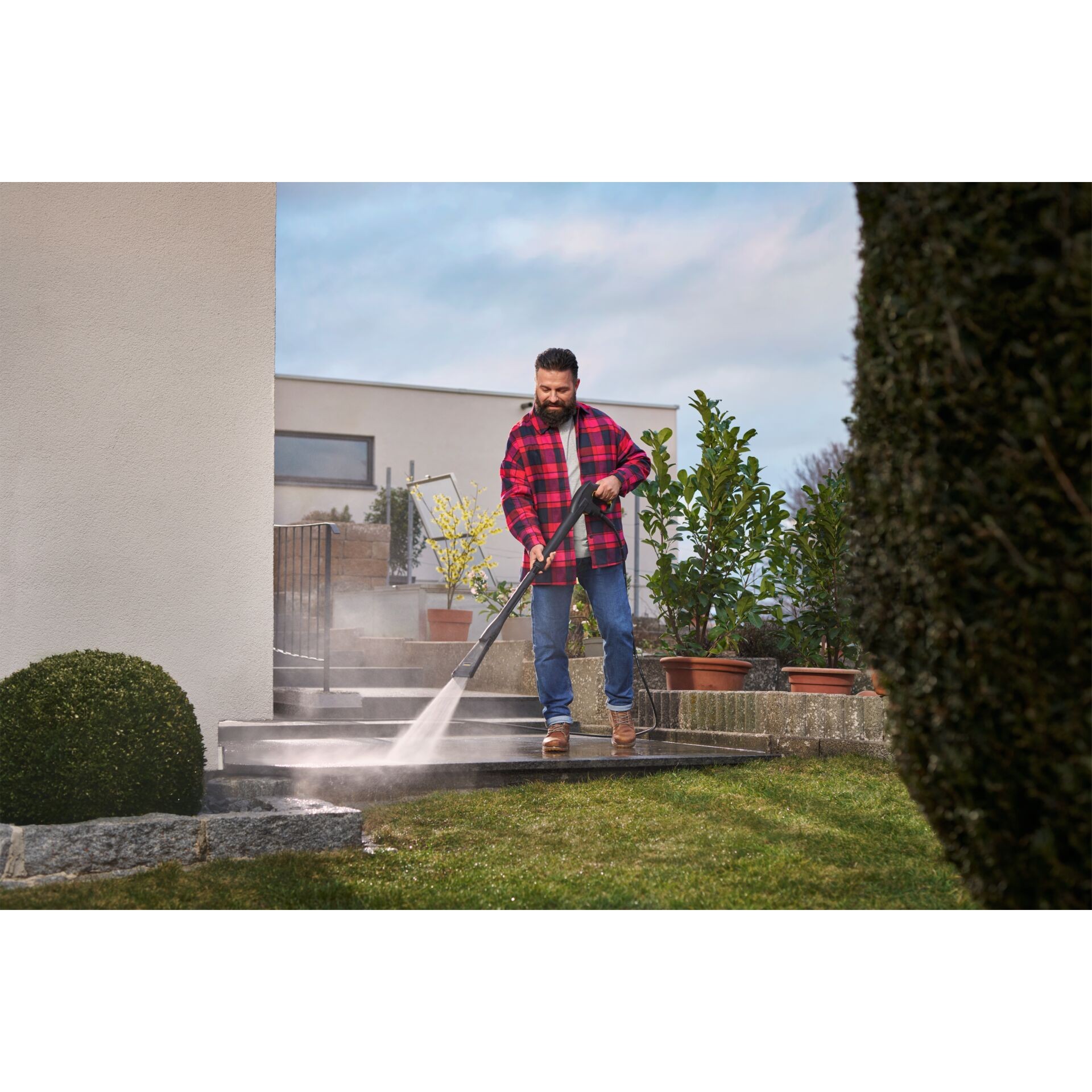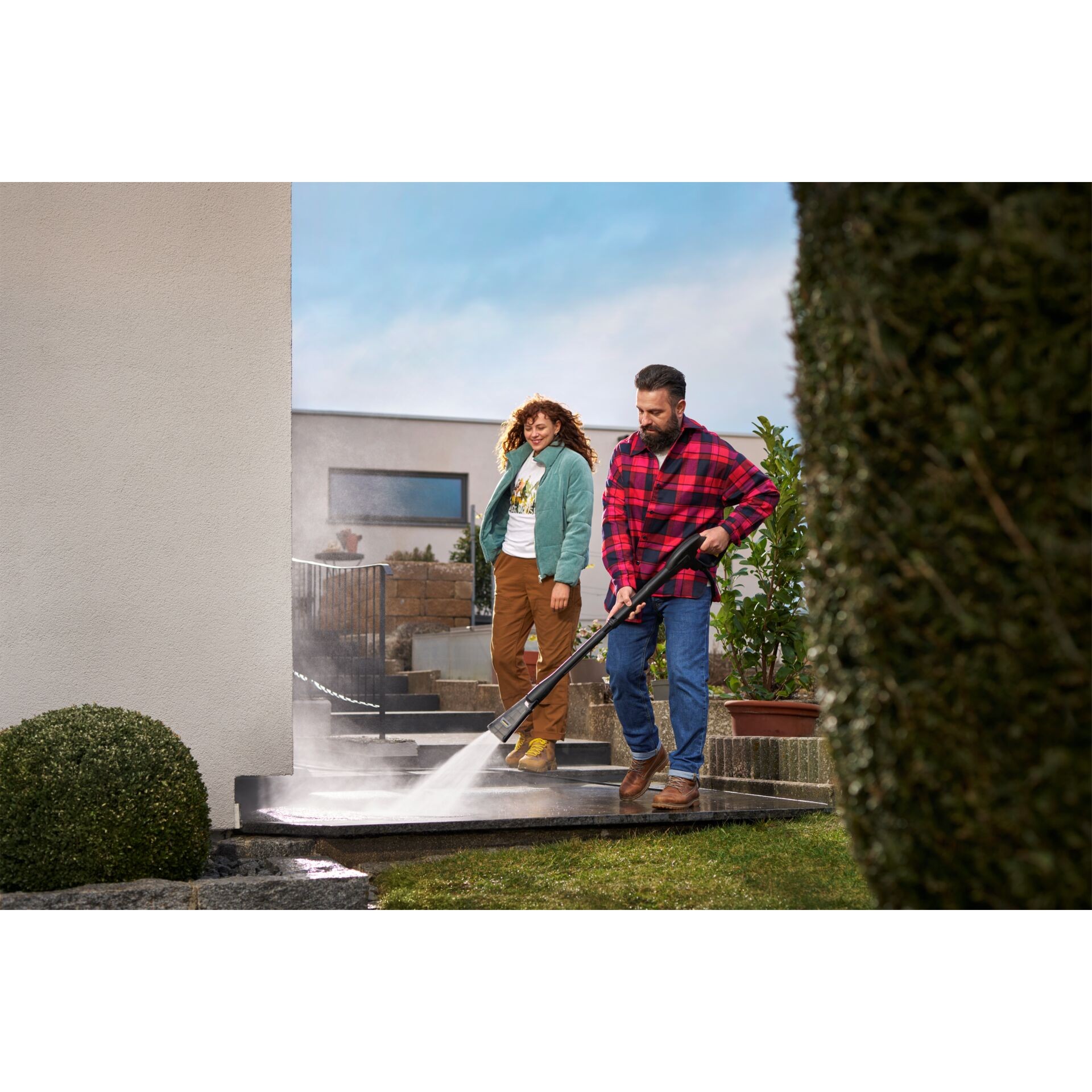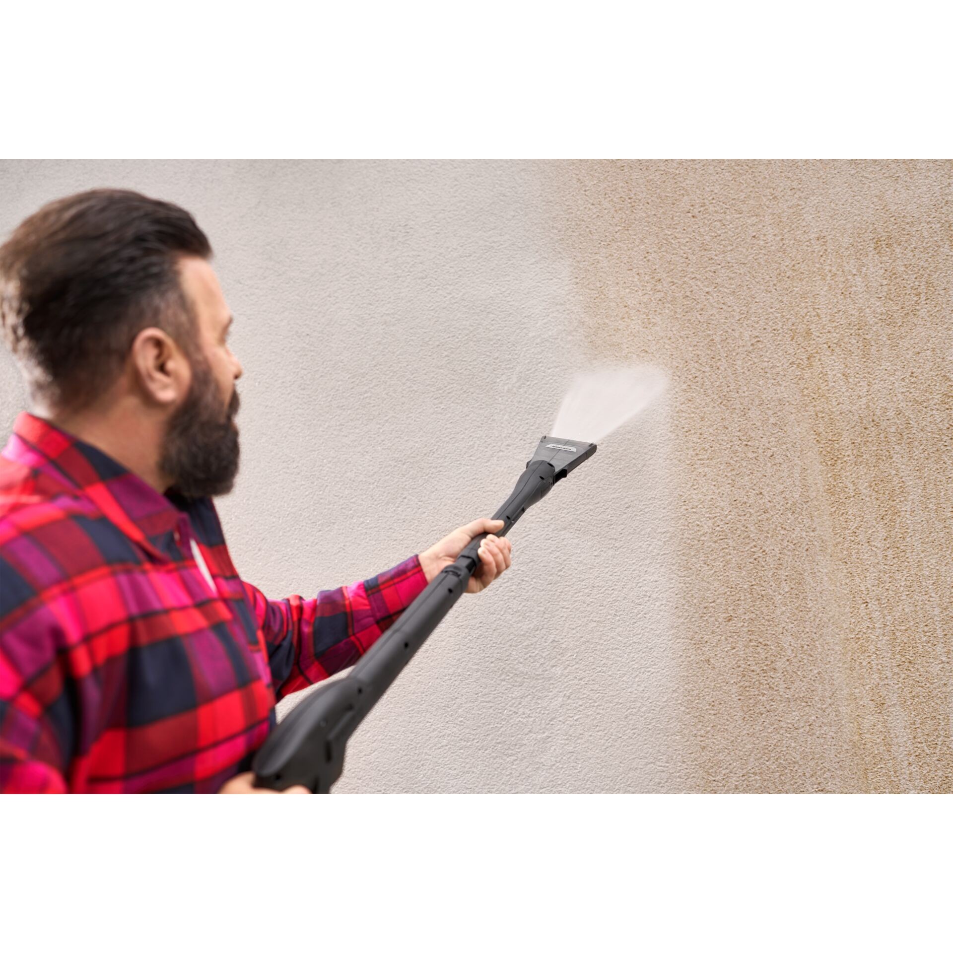 Efficient and thorough cleaning of sensitive surfaces has never been so easy, fast and resource-saving. With a 50 percent higher cleaning performance at the same resource consumption, the eco! Booster a 50 percent higher water and energy efficiency compared to a flat jet nozzle. This allows a very thorough and fast procedure and thus saves time, water and energy. Thanks to the very even removal, the dirt is removed particularly effectively and even sensitive materials such as painted surfaces or wood can be cleaned without hesitation. If the attachment is removed from the spray lance, stubborn dirt can be processed.The eco! Booster 145 is suitable for all Kärcher high-pressure cleaners of class K 5.