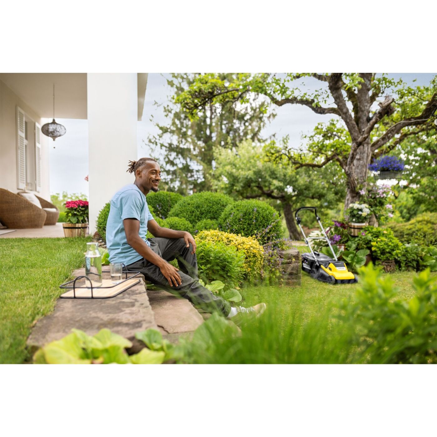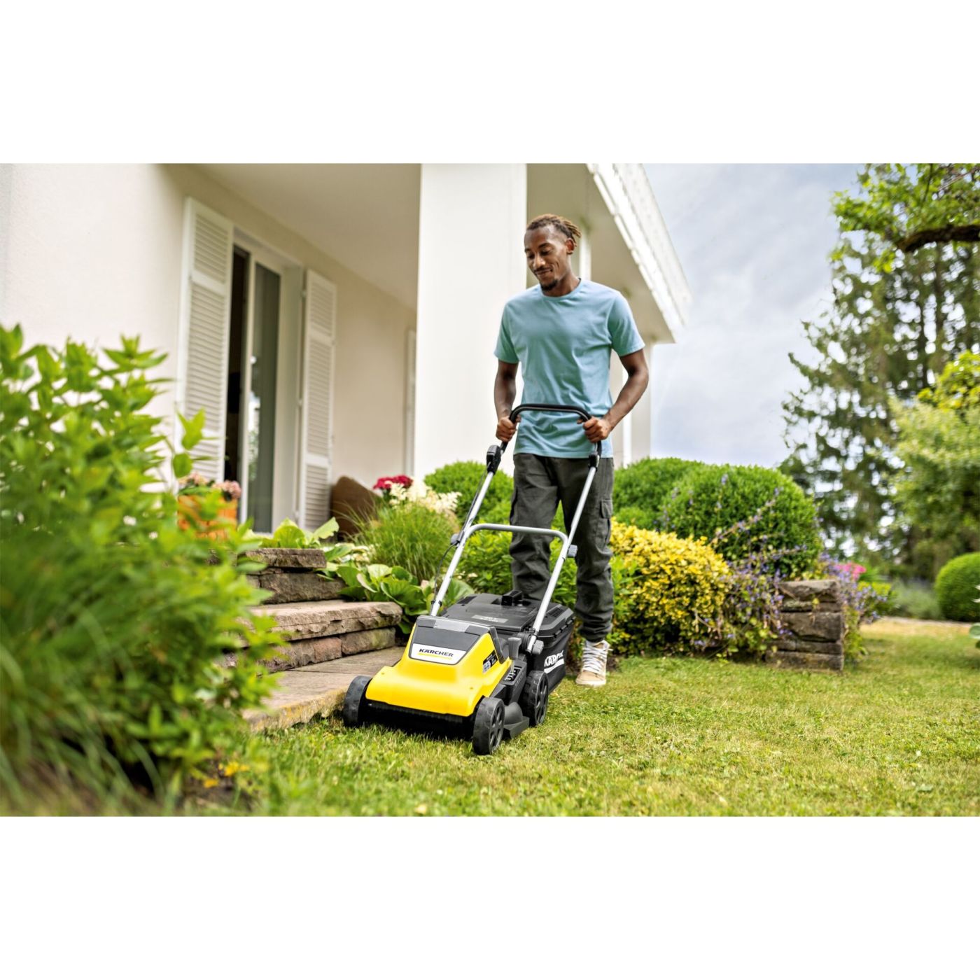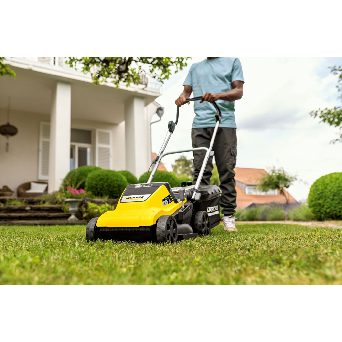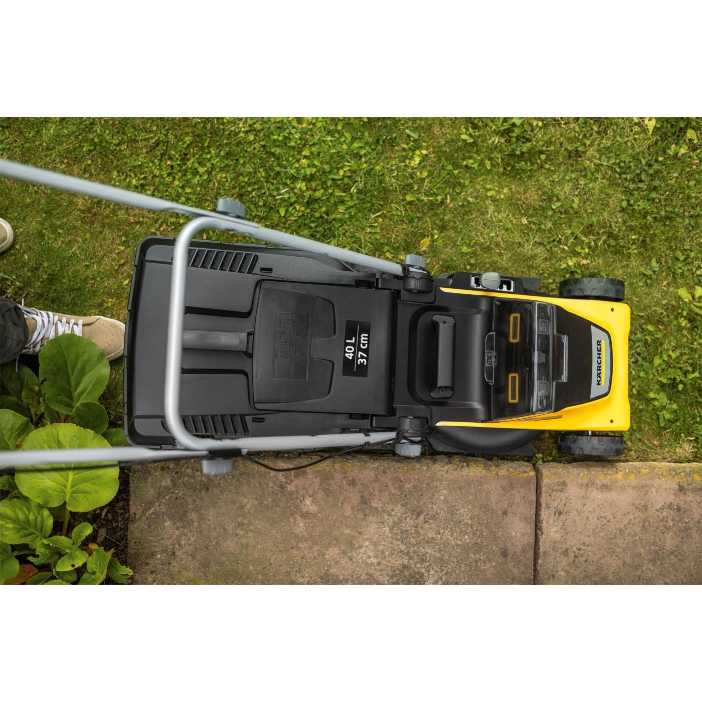 Snažna i vrlo mobilna: Napajana s 2 18 V baterije i motorom bez četkica od 36 V, LMO 4-18 Dual idealno je rješenje za travnjake do 450 m2, Mala težina čini kosilicu posebno okretnom i mobilnom, što olakšava upravljanje po neravnom terenu i oko prepreka, Radna širina je 37 cm, centralno podešavanje visine košnje omogućuje podešavanje visine košnje u 5 koraka od 25 do 65 mm, Zahvaljujući inteligentnoj kontroli motora, funkcija iPower osigurava da se brzina košnje automatski prilagođava uvjetima trave, Češljevi za travnjak automatski detektiraju travu koja raste blizu ruba, S 2-u-1 sustavom košnje, pokošena kultura se ravnomjerno raspoređuje po travnjaku kao gnojivo putem klina za malč ili se skuplja u veliki sakupljač trave od 40 litara - za dugotrajnu košnju bez zaustavljanja, Vodilica se može podesiti po visini za udoban radni položaj. Ako je štap preklopljen, može se pohraniti na način koji štedi prostor. Za transport preko stepenica i izbočina postoji velika, stabilna ručka za nošenje. Kompatibilan sa svim zamjenjivim baterijama 18 V Kärcher Battery Power platforme baterija.