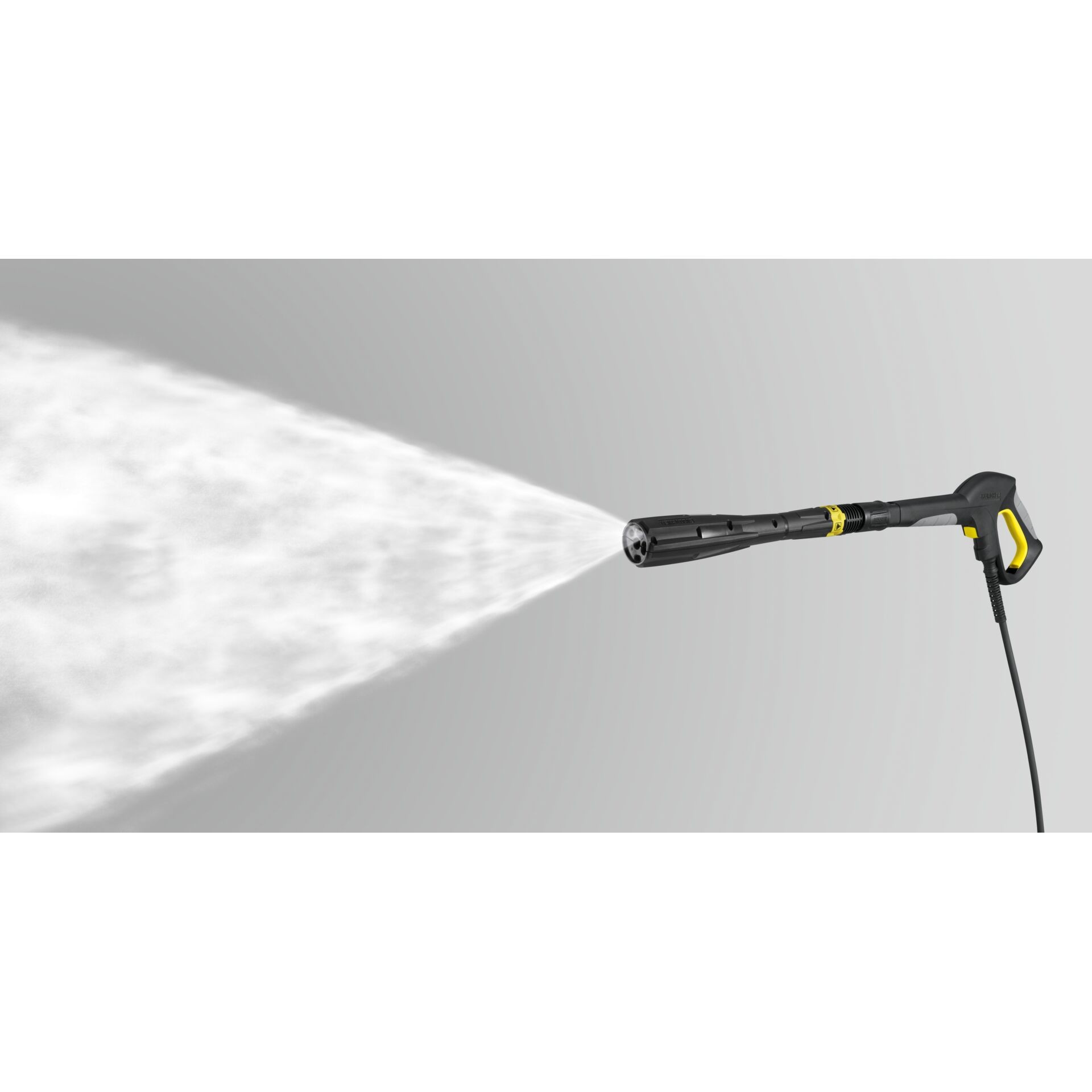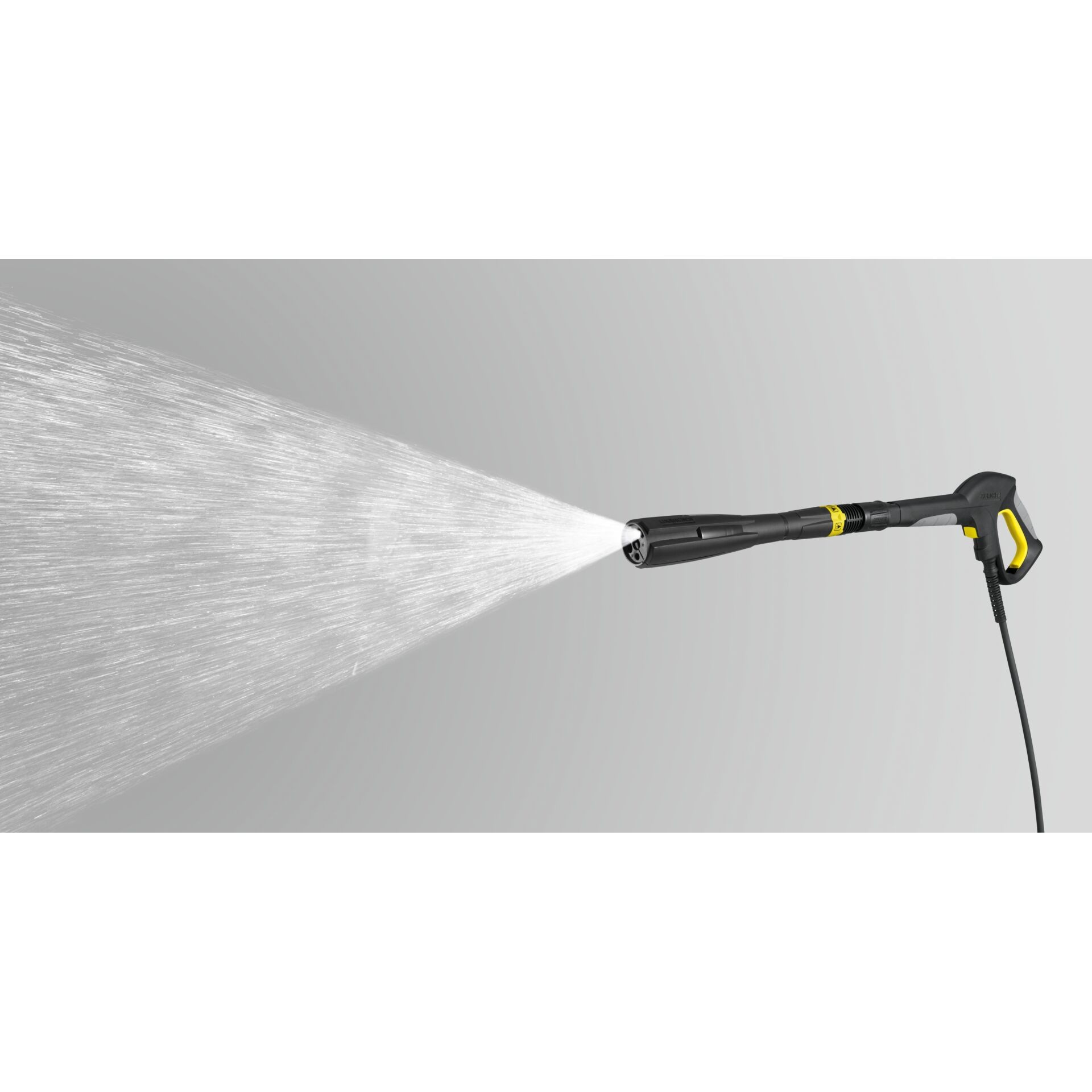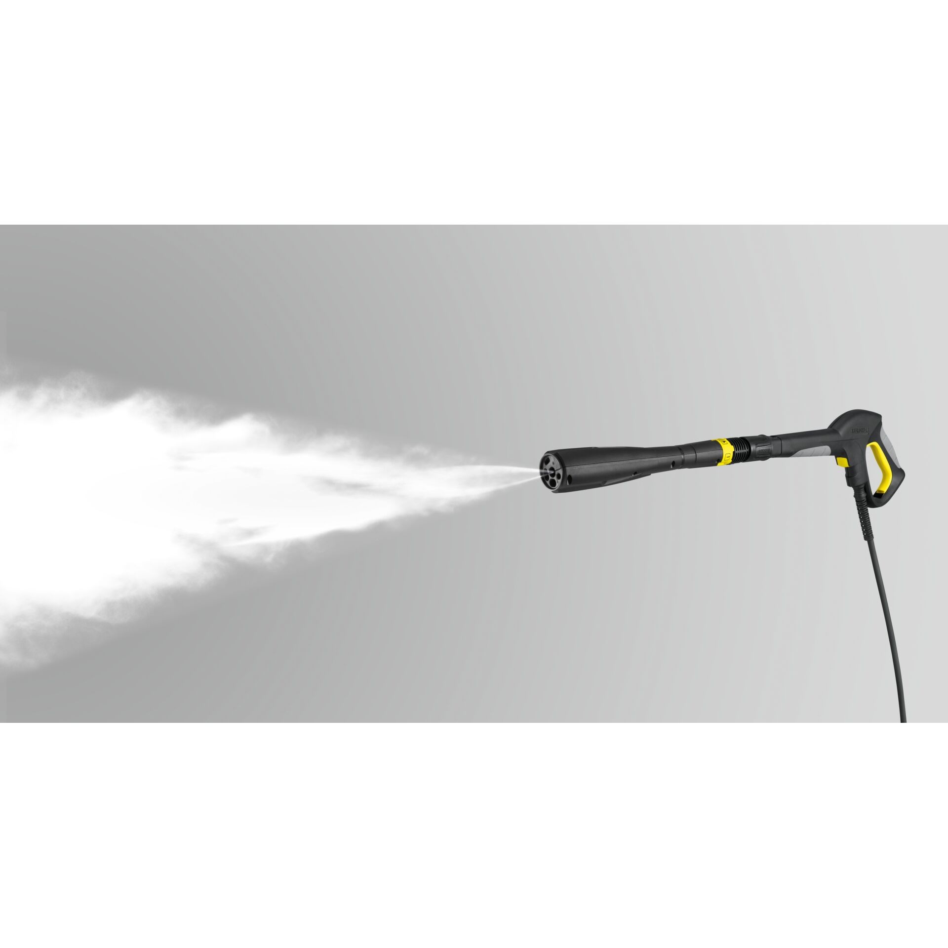 Višestruko snažan mlaz nudi 5 vrsta mlaza u jednoj cijevi za prskanje: sprej za deterdžent, ravni mlaz visokog tlaka, rotorska mlaznica, točkasti mlaz i široki ravni mlaz niskog tlaka. Odabir odgovarajućeg snopa vrši se prilično jednostavnim udobnim okretanjem, tako da više nije potrebna složena zamjena cijevi za mlazanje. Svestrani uređaj za dom, vrt i automobil prikladan je za Kärcher visokotlačne čistače klasa K 3 do K 5, ali nije kompatibilan sa serijama Smart Control, Power Control i Full Control.