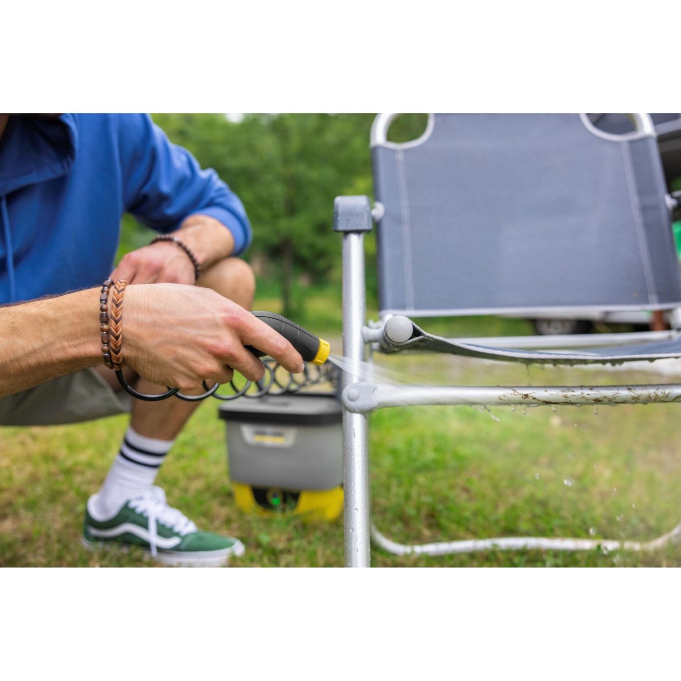 Kärcher OC 4 je kompaktan, mobilni bežični čistač pod tlakom za brzo čišćenje u pokretu - bez priključka na struju ili vodu. Sa spremnikom za vodu od 8 l, spiralnim crijevom i integriranim pištoljem za prskanje možete nježno i učinkovito čistiti bicikle, planinarske cipele ili vrtni namještaj. LED indikator prikazuje razinu baterije, a pribor se može spremiti u spremnik radi uštede prostora. Razni nastavci pružaju dodatnu praktičnost.