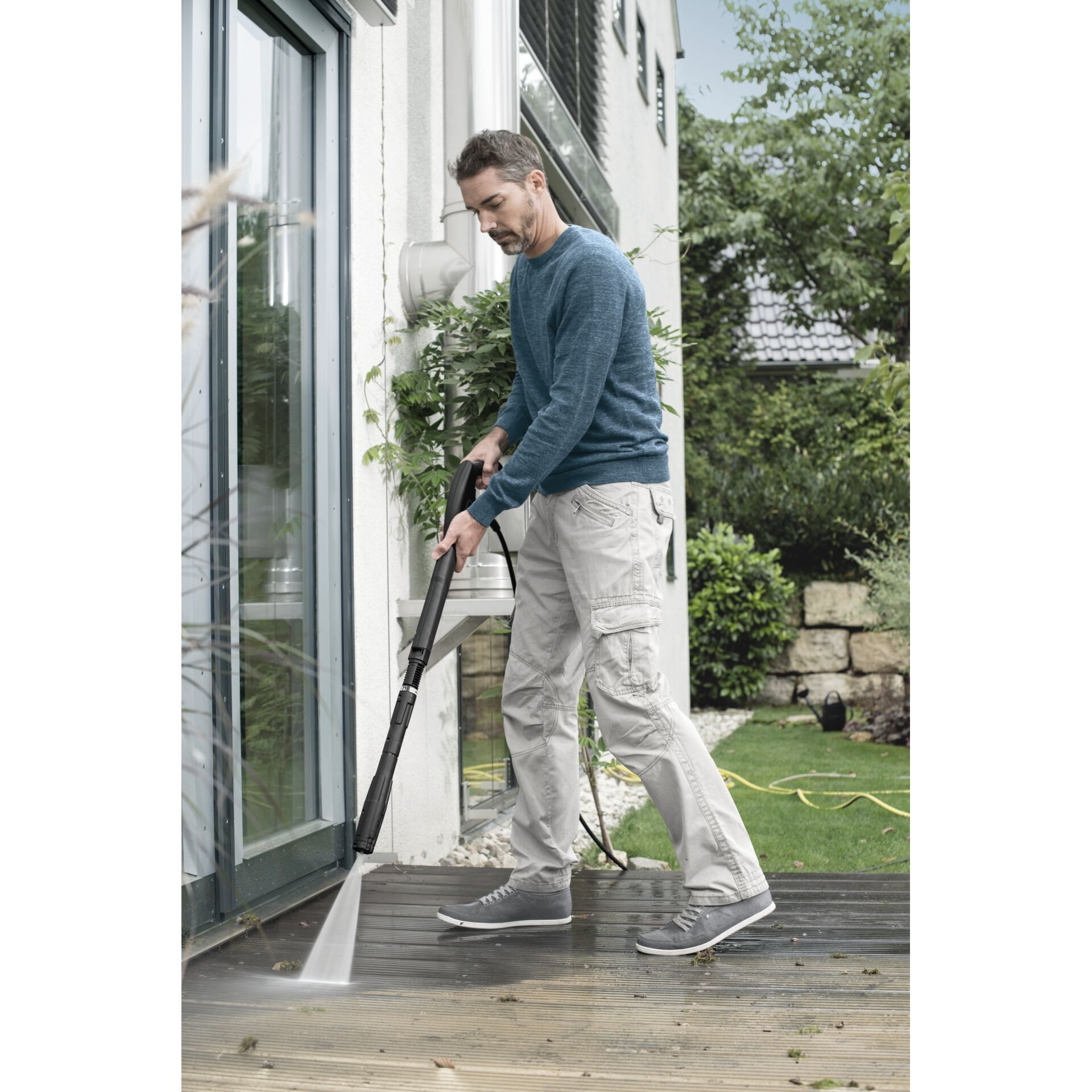 The Vario Power jet: from low-pressure cleaning agent to high-pressure jet in continuous pressure regulation by simply turning the jet. Ideal for cleaning small areas around the house and garden, such as walls, paths, fences or vehicles. Suitable for all Kärcher K 7 high-pressure cleaners.