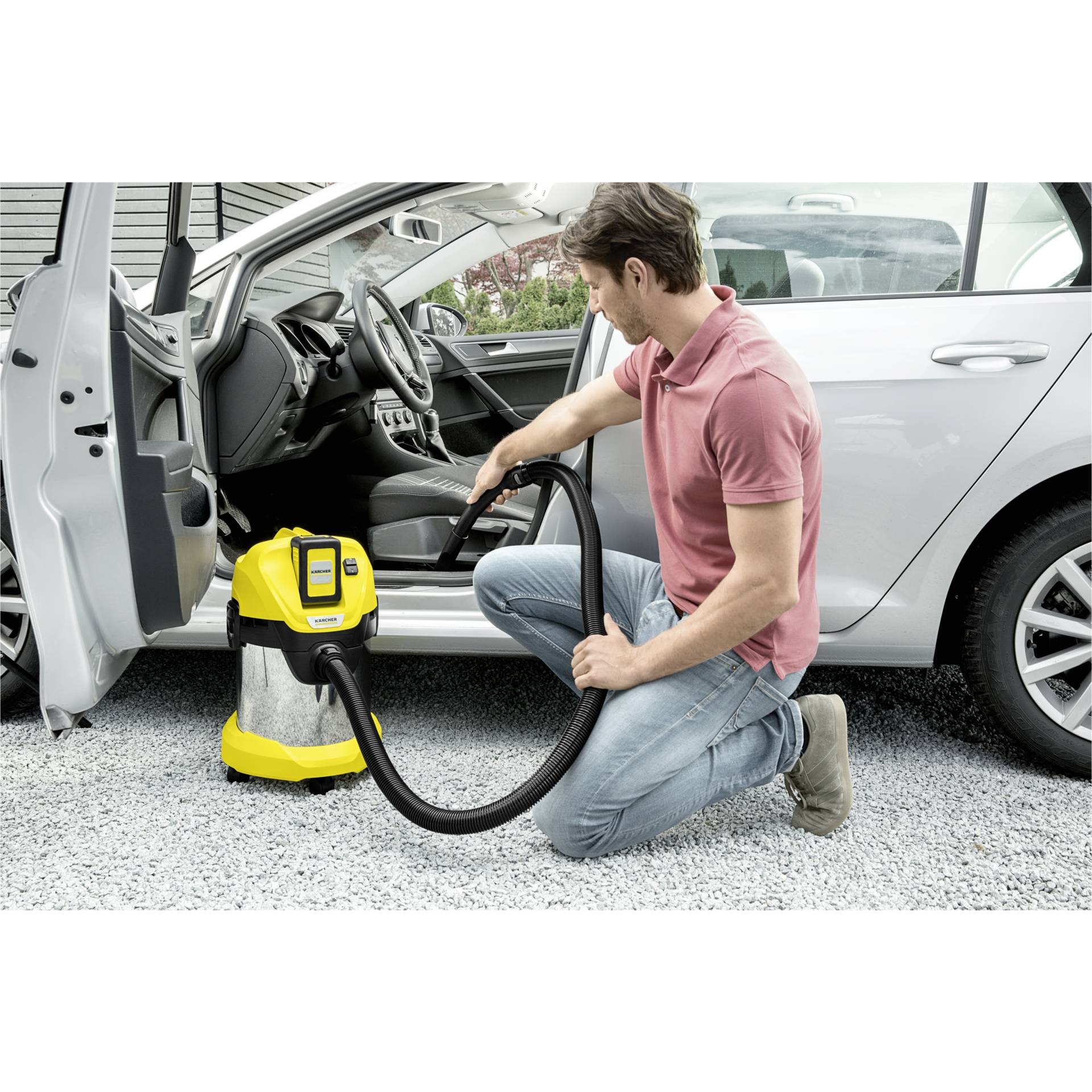 The premium version of the WD 3 Battery with 17-litre stainless steel tank. The battery-operated multi-purpose vacuum cleaner with cartridge filter offers maximum freedom of movement. Battery not included.