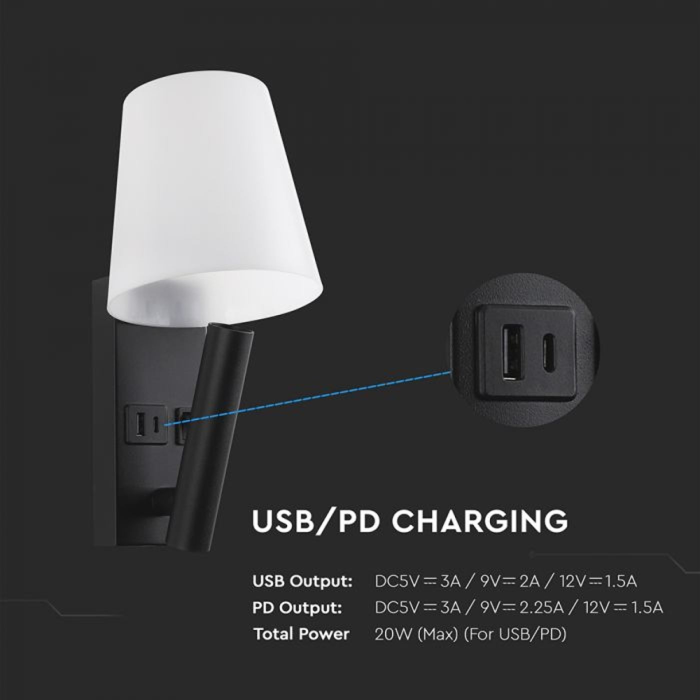 LED noćna svjetiljka 2W CREE čip 3000K IP20 USB/TIP C, crna