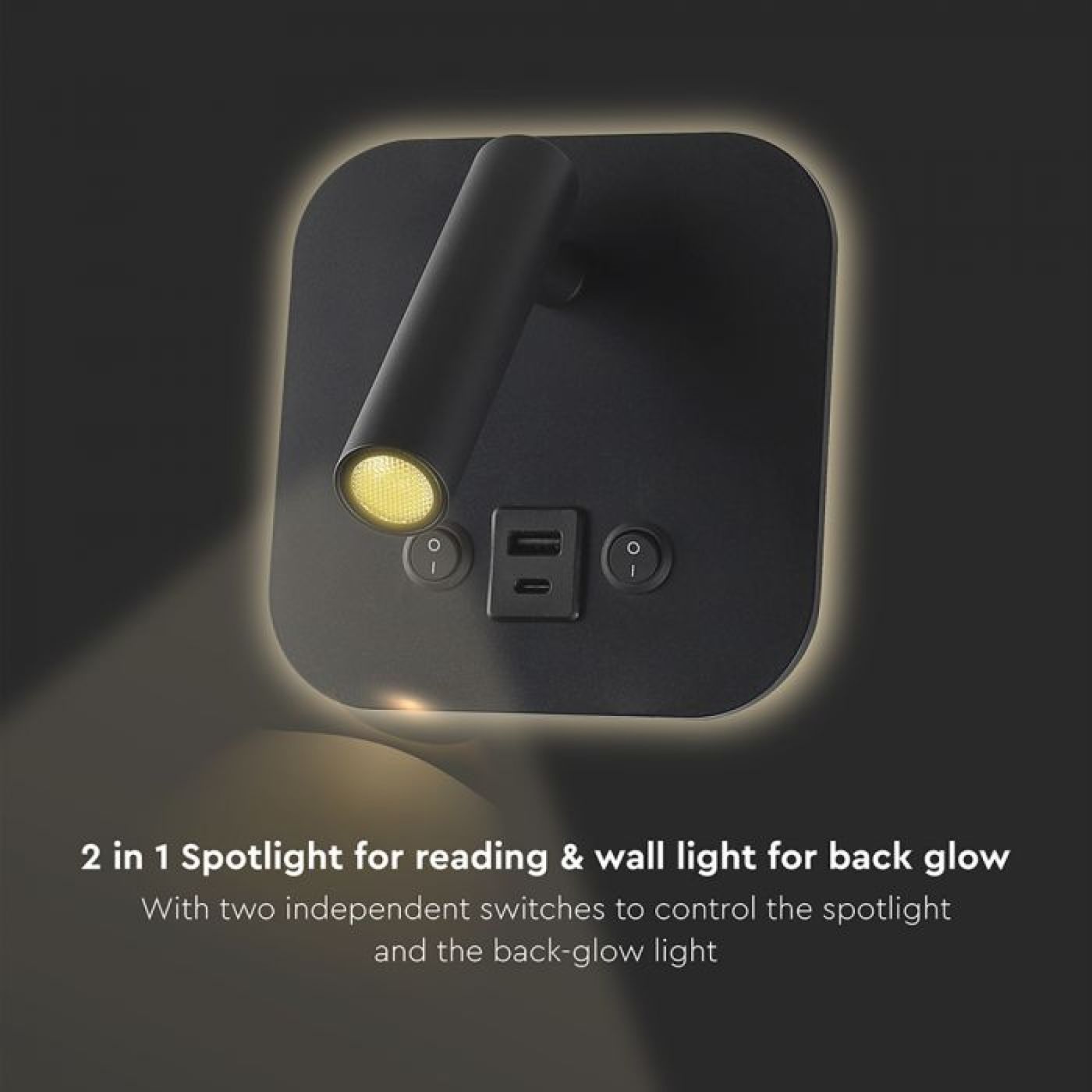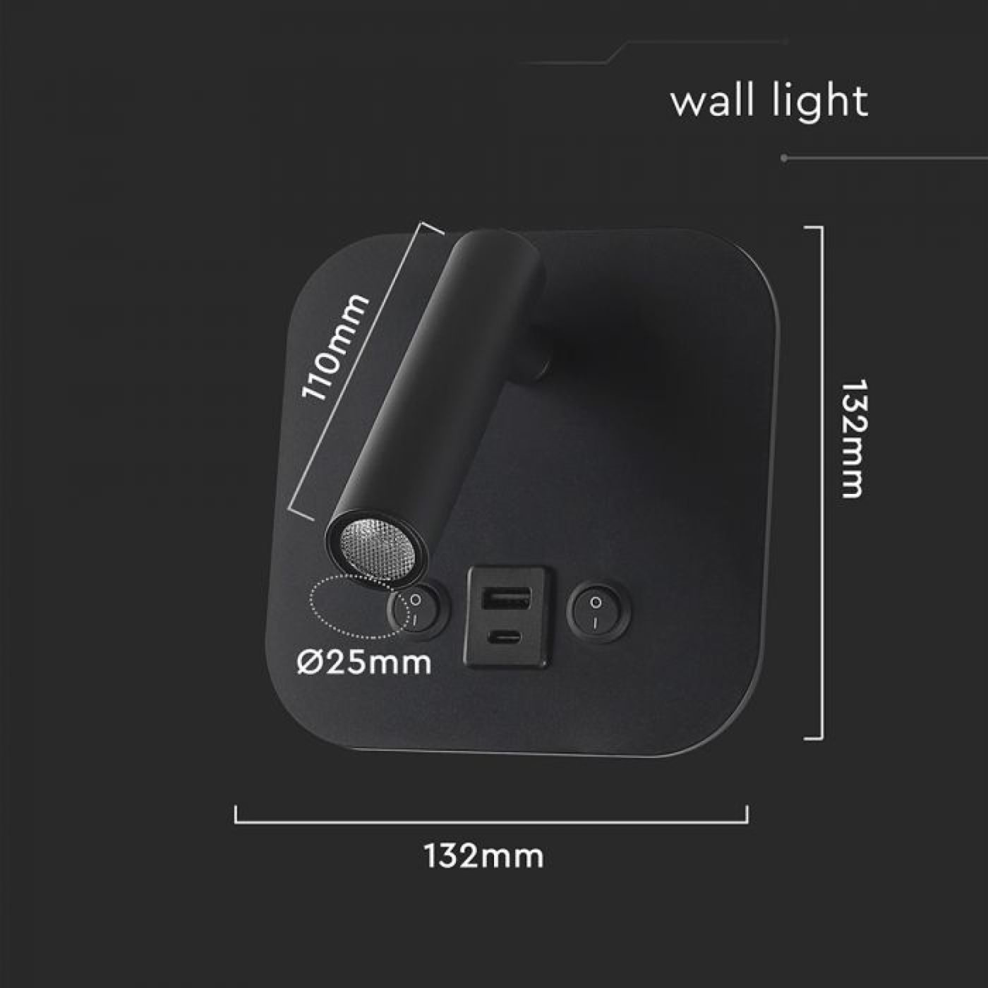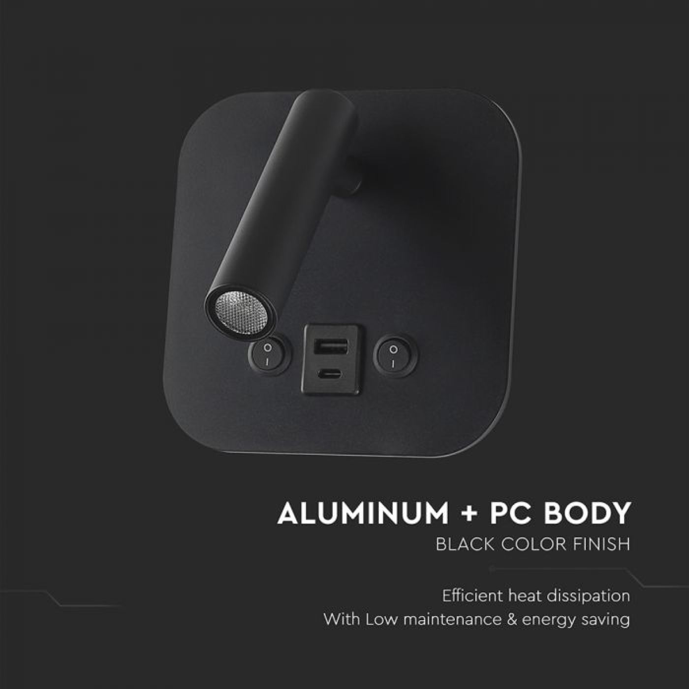 LED noćna svjetiljka 8W CREE čip 3000K IP20 USB/TIP C, crna