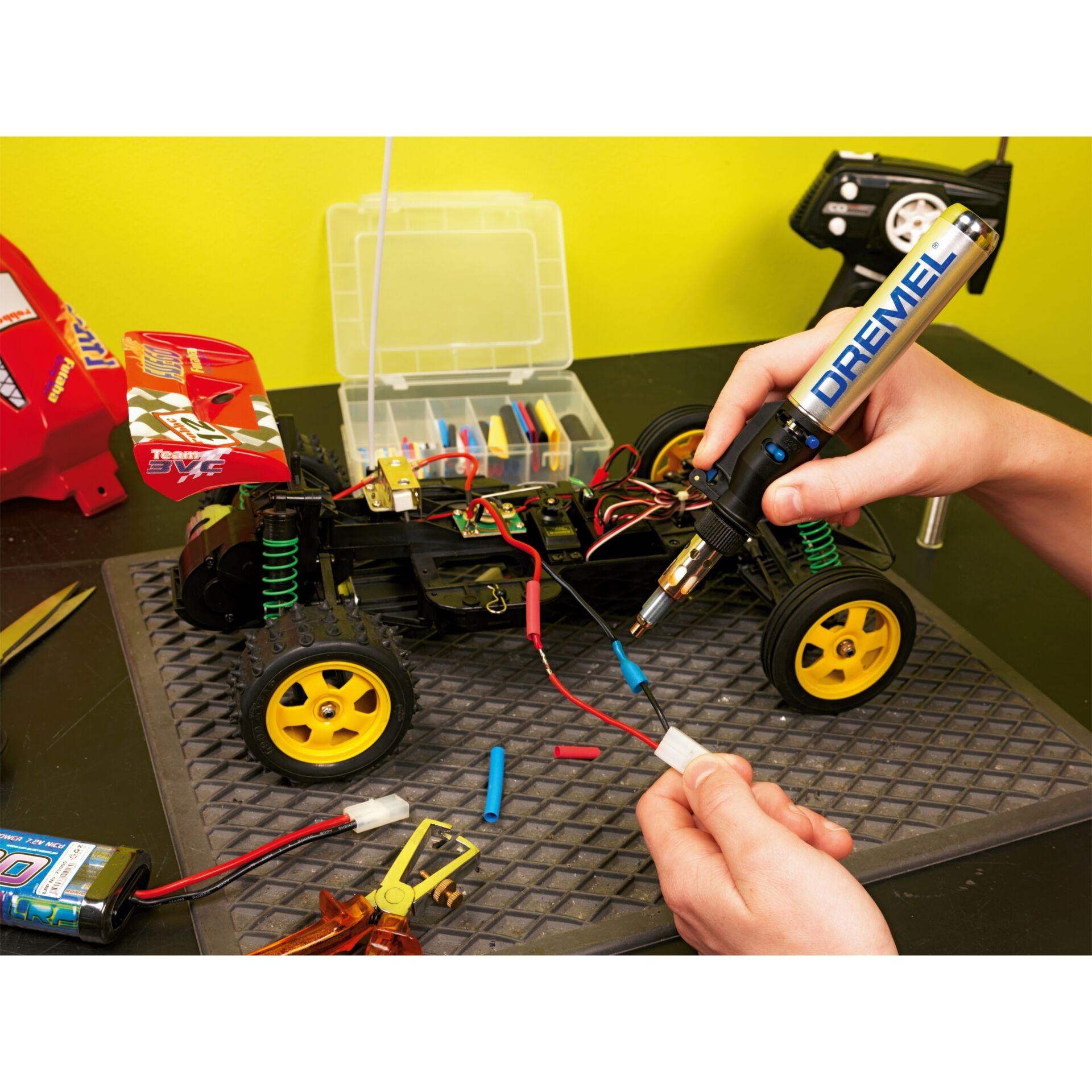 The Dremel VersaTip is a versatile, cordless, butane-powered soldering iron suitable for a wide range of applications from soldering to fire painting. It offers a variable temperature setting, a lock for continuous operation and a lock to avoid mishaps.