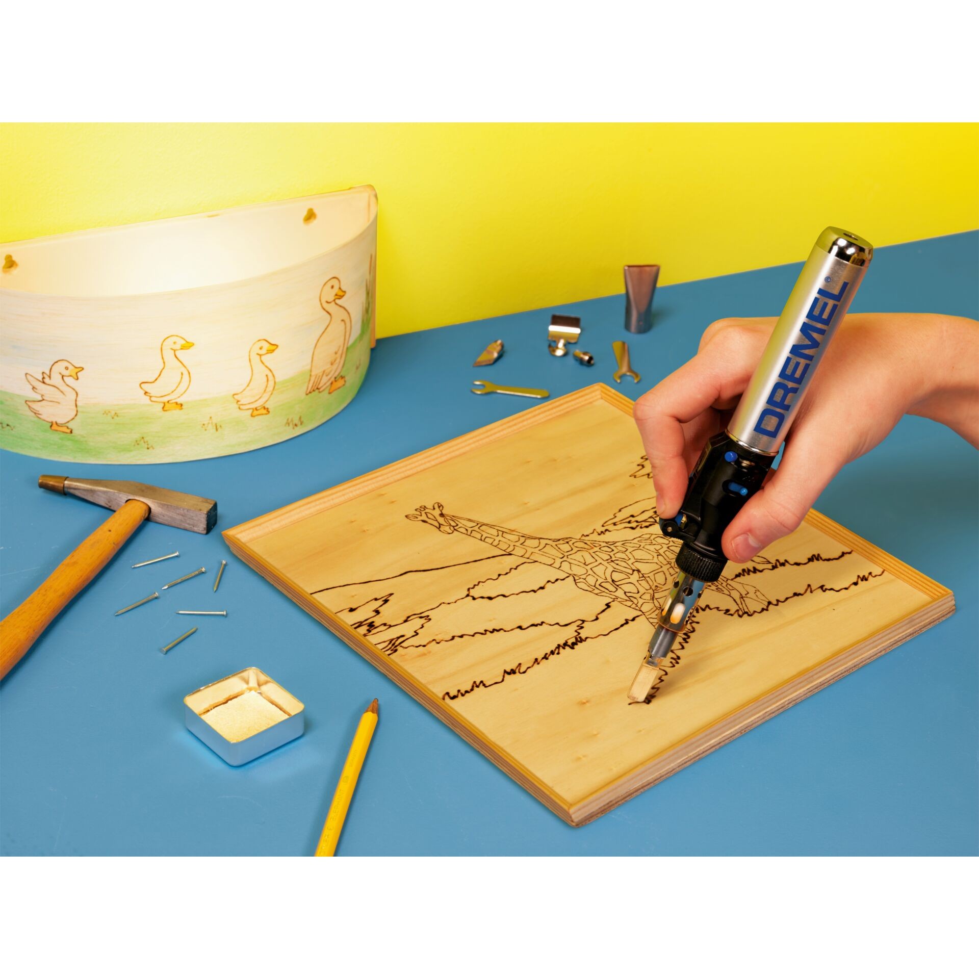 • Supplied with 7 accessories for six different applications: soldering, fire painting, hot cutting, hot stamping, paint removal and welding