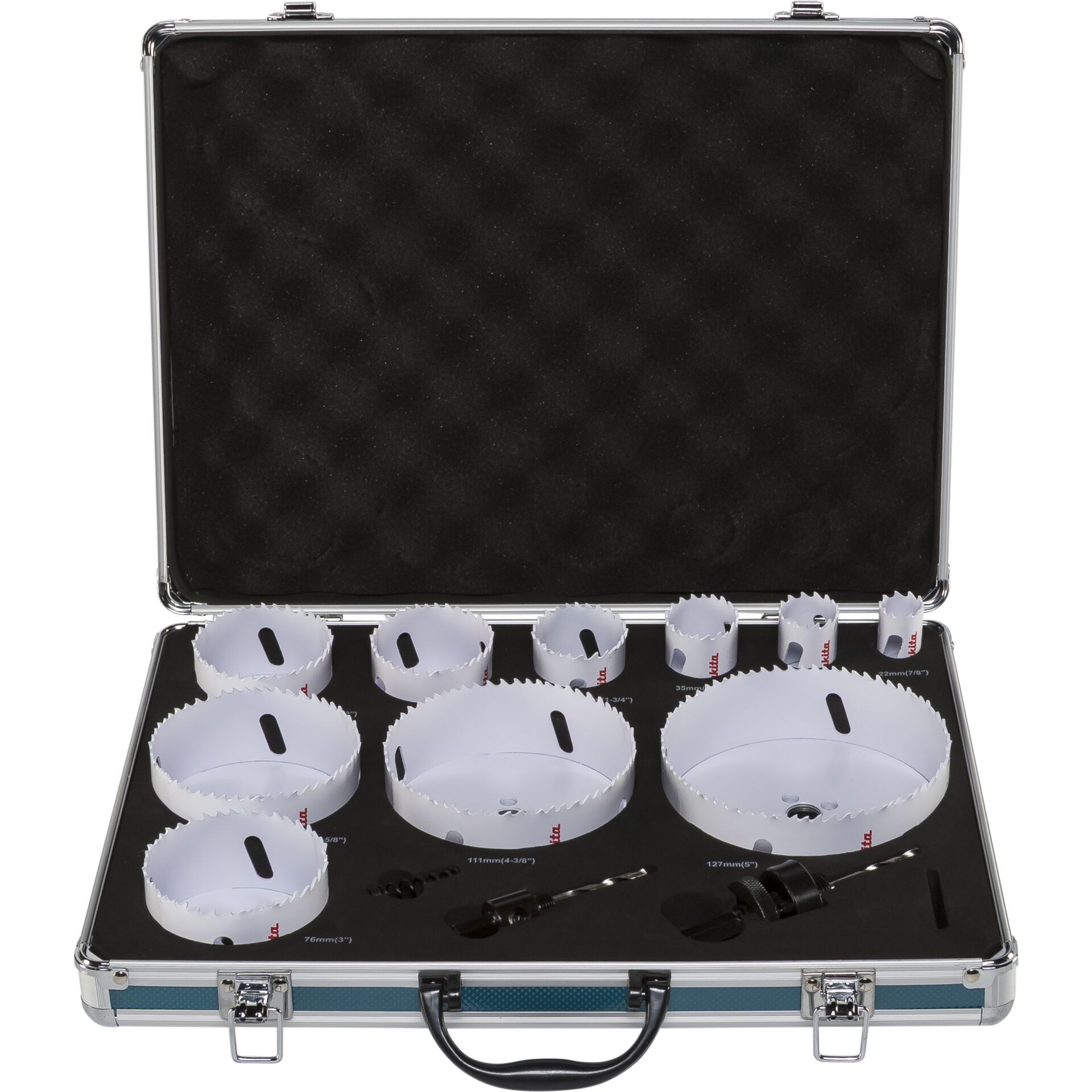 • 13-piece set with hole saws (22 mm to 127 mm diameter)