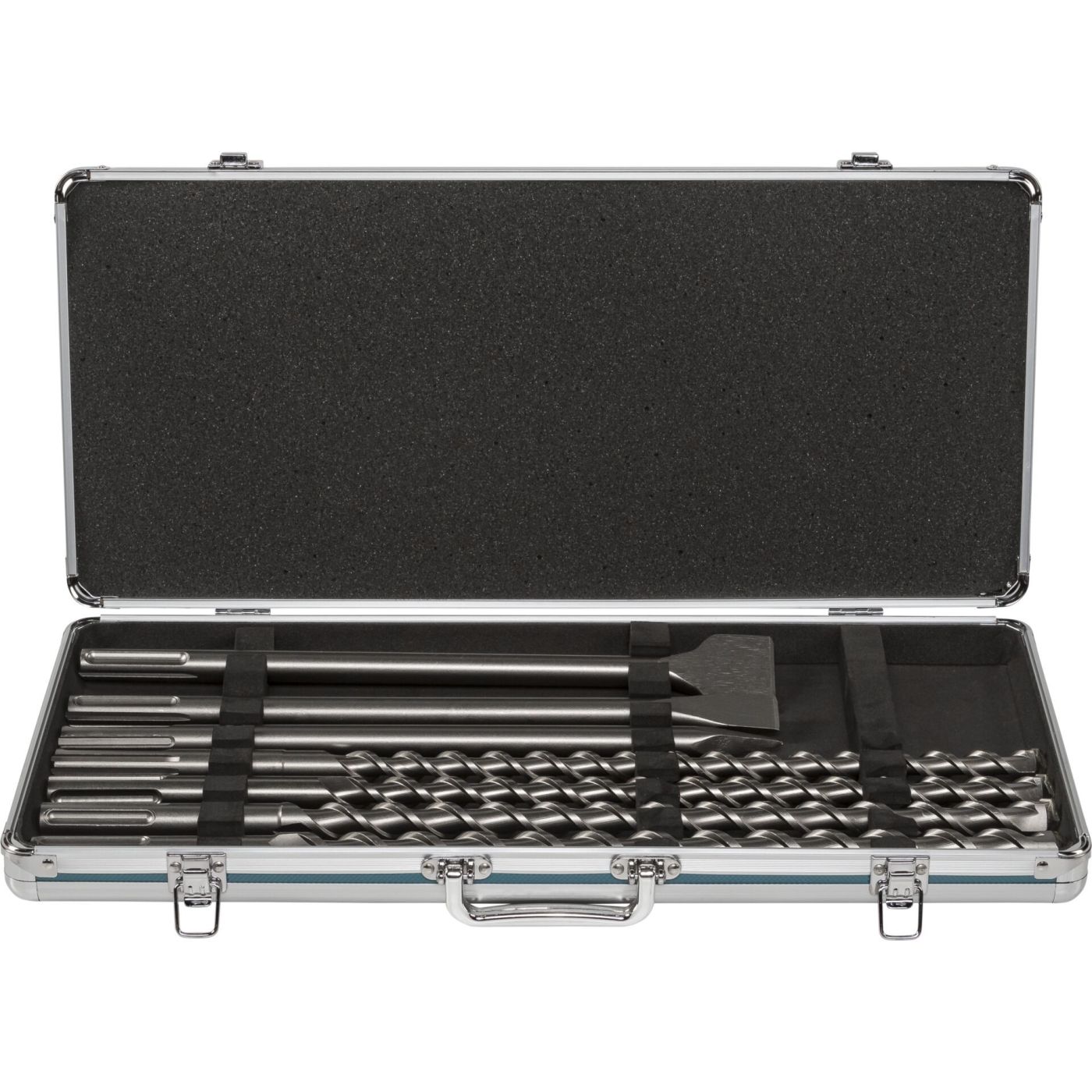 Set sadrži četiri snažna svrdla dimenzija 18 x 540, 20 x 540, 22 x 540 i 25 x 540 mm, kao i tri različita dlijeta: šiljasto dlijeto 400 mm, ravno dlijeto 25x400 mm i široko dlijeto 50x400 mm. Svi alati izrađeni su od robusnog čelika i pristaju na SDS-max držače. Za sigurno skladištenje i jednostavan transport, set dolazi u čvrstoj Makita aluminijskoj kutiji.