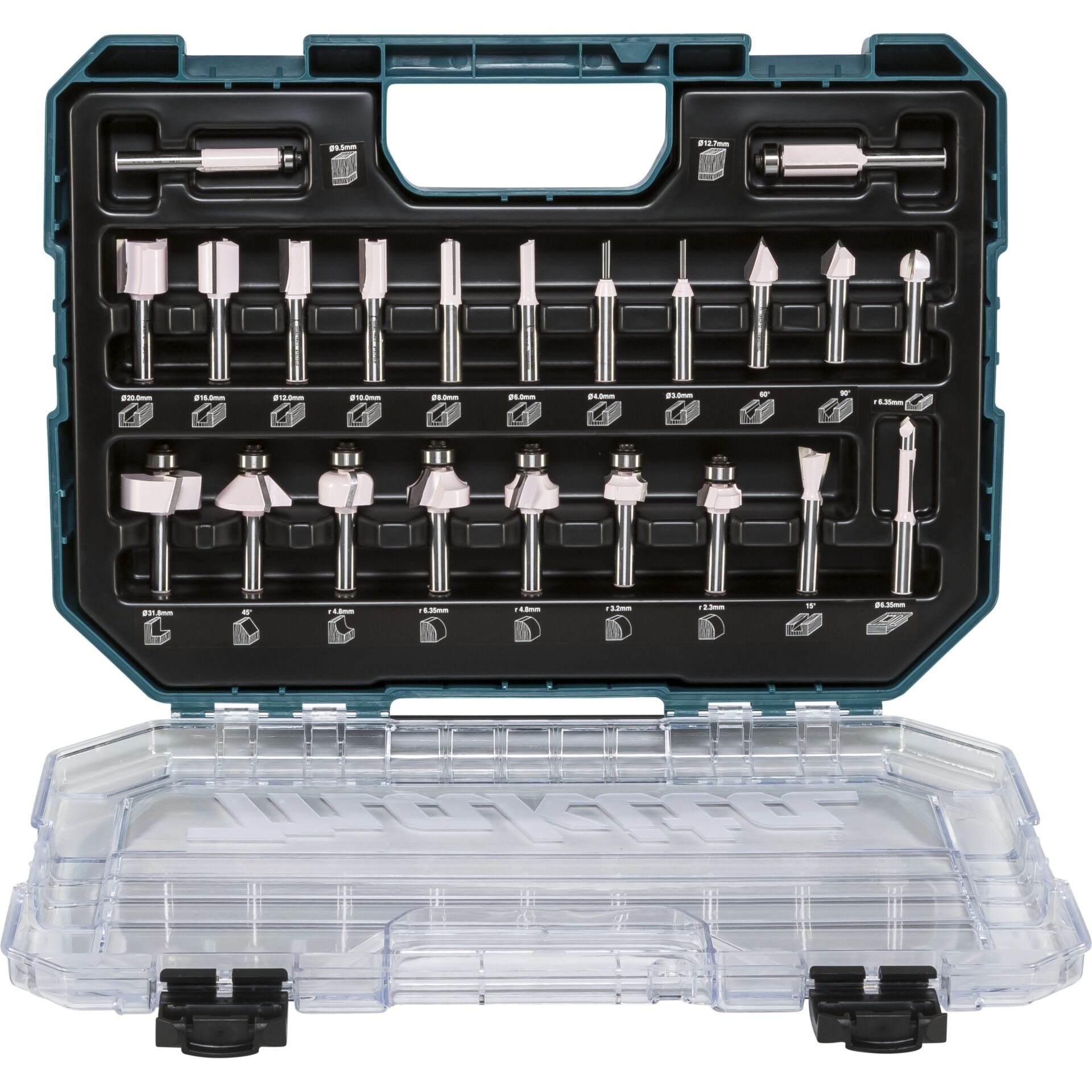 • 22-piece set with different cutter types