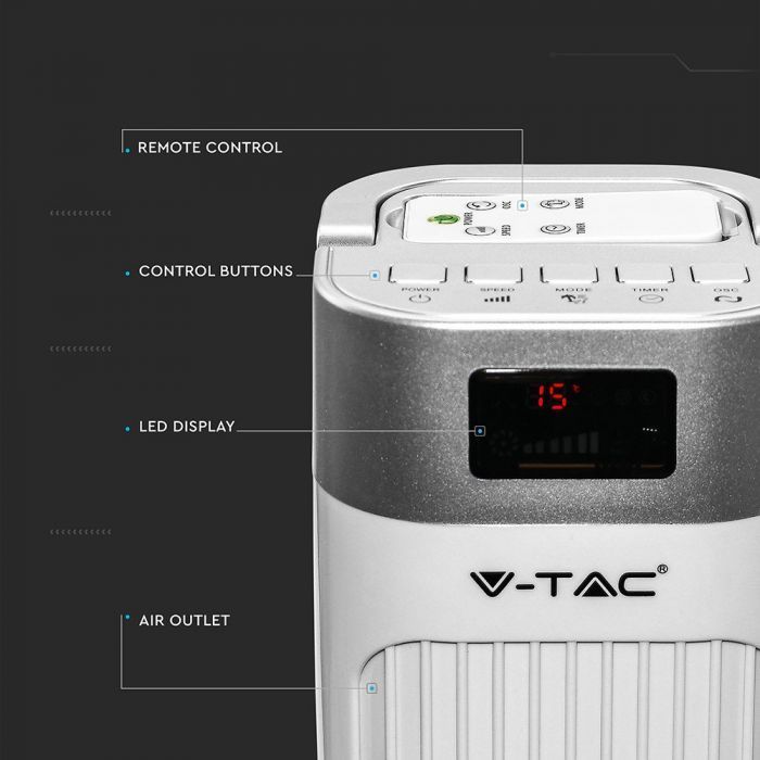 Podni ventilator s digitalnim zaslonom i daljinskim upravljačem 55W 3 brzine vrtnje 95cm bijeli