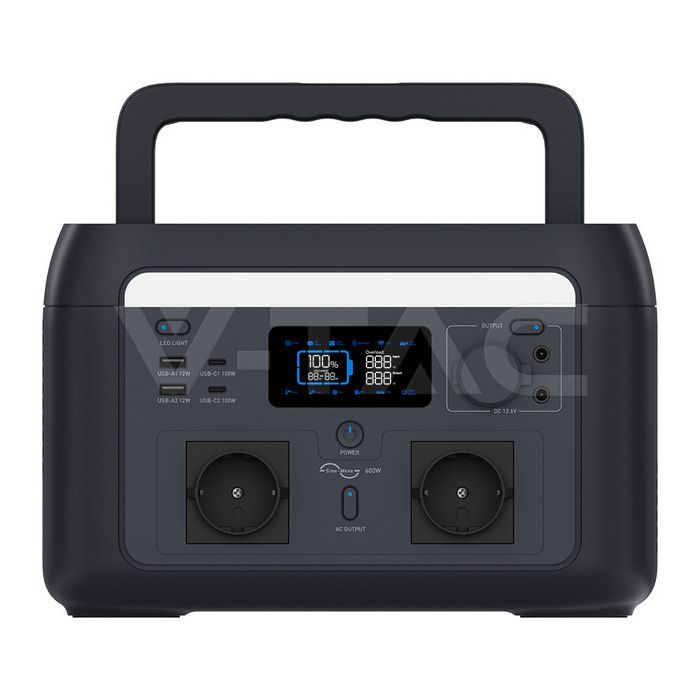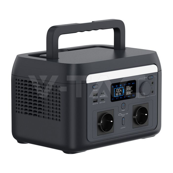 • V -TAC SKU 12705 (VT-603) elektrana je kompaktno i svestrano rješenje za pohranu energije dizajnirano za kućnu, profesionalnu i vanjsku upotrebu. Integrira LiFePO4 bateriju od 512 Wh s arhitekturom od 25,6 V , nudeći stabilnost rada i dugi vijek trajanja.