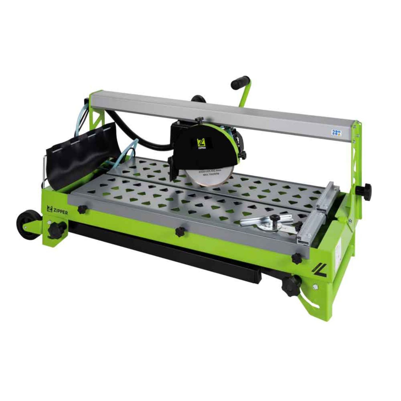 Zipper ZI-FS200-720 stroj za rezanje pločica snažno je rješenje za precizno rezanje na gradilištima i u radionicama. S dijamantnim diskom od Ø 200 mm i kliznim klizačem omogućuje čiste i precizne rezove. Integrirana pumpa za rashladnu vodu osigurava učinkovito hlađenje, dok sklopive nožice i transportni kotači omogućuju jednostavan transport. Zahvaljujući jedinici za rezanje koja se okretava do 45 stupnjeva, može se fleksibilno koristiti za različite kutove rezanja.