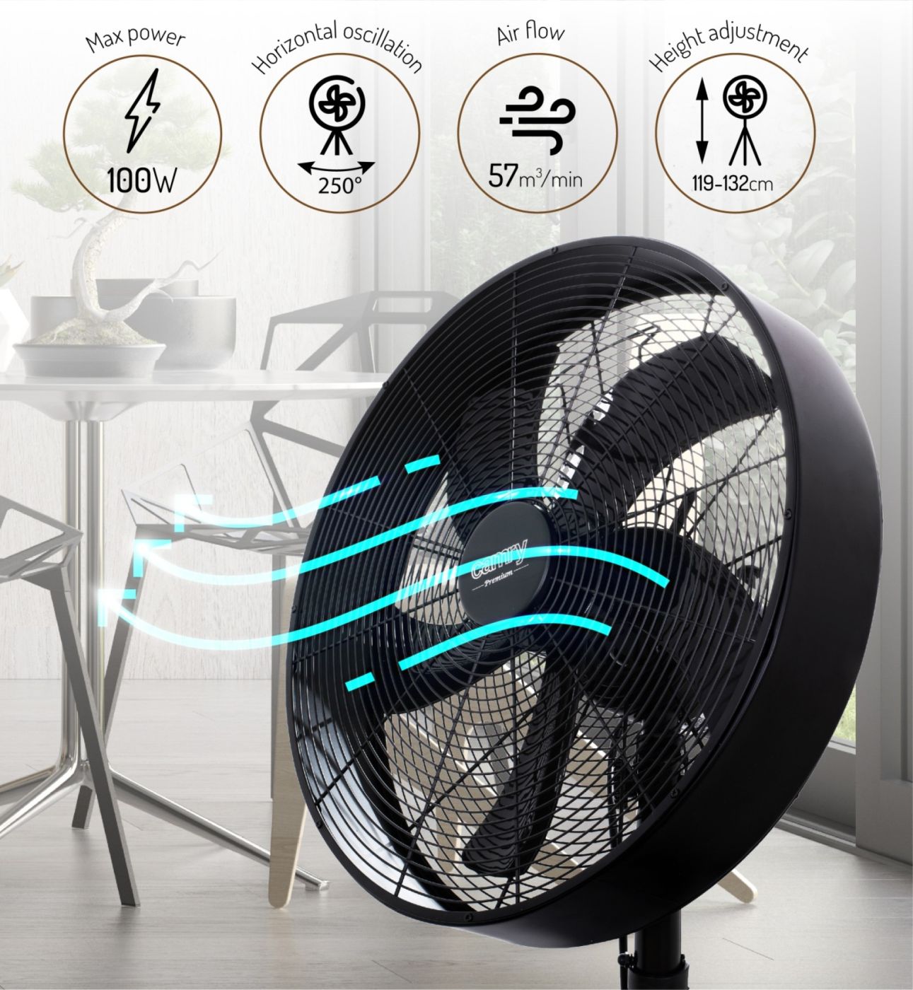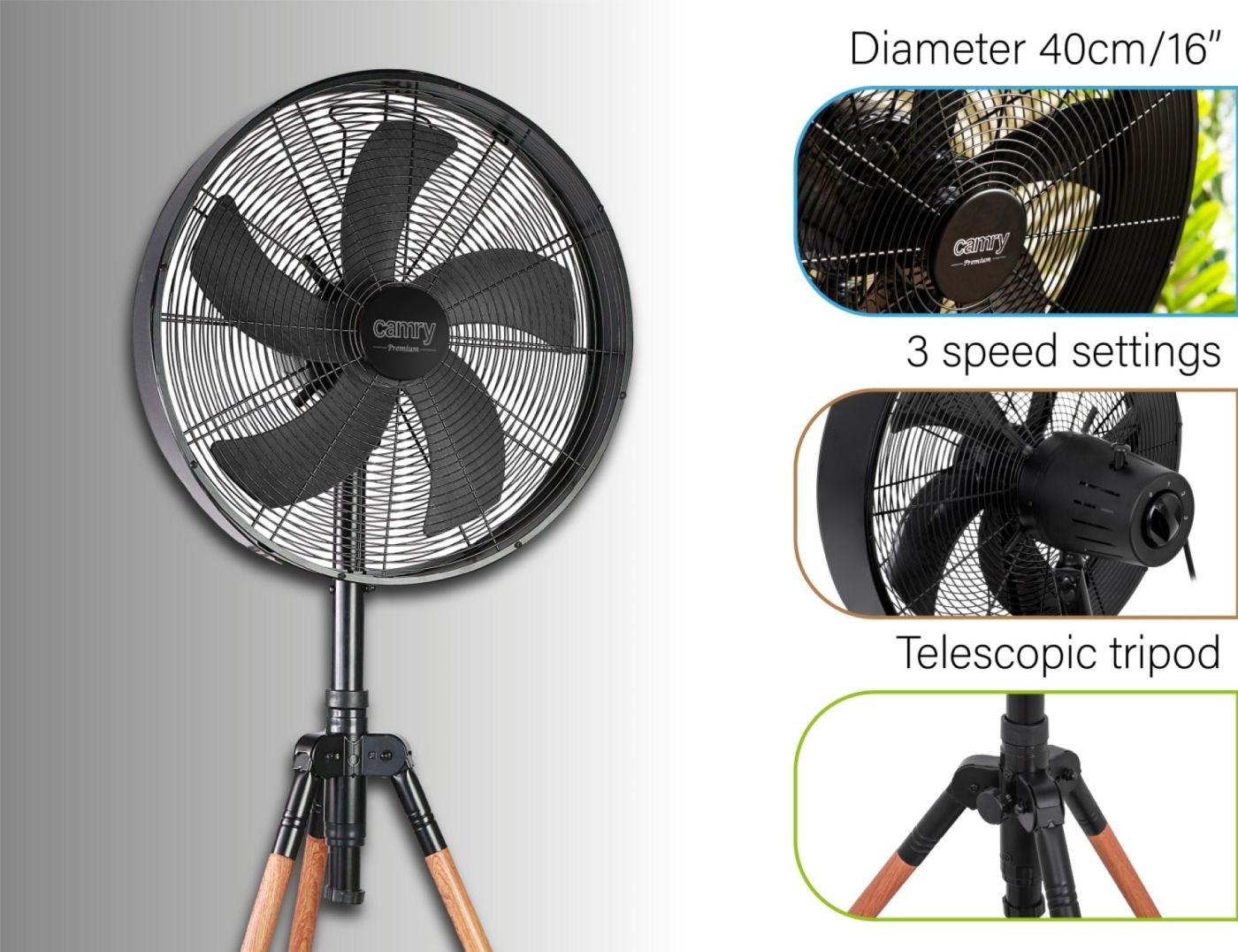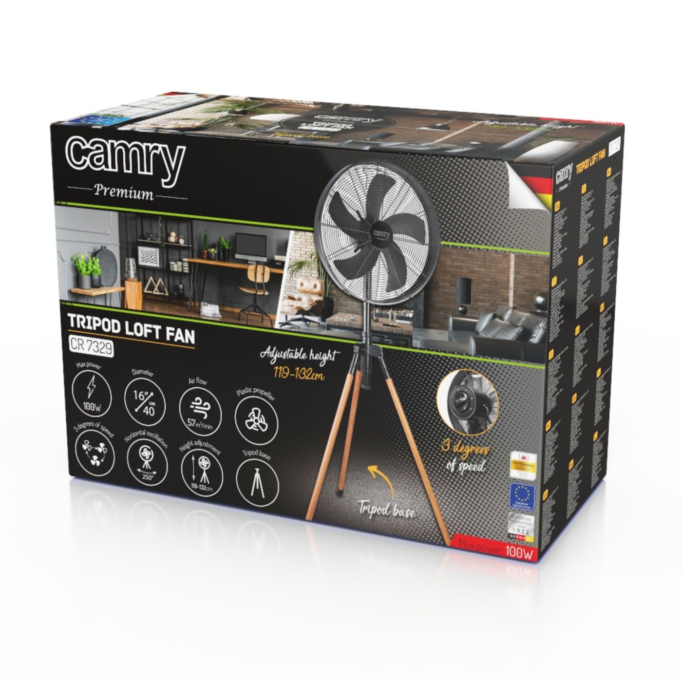 Ventilator s tronošcem u modernom dizajnu- Loft 100w 40cm / 16”, 57 m³/min
