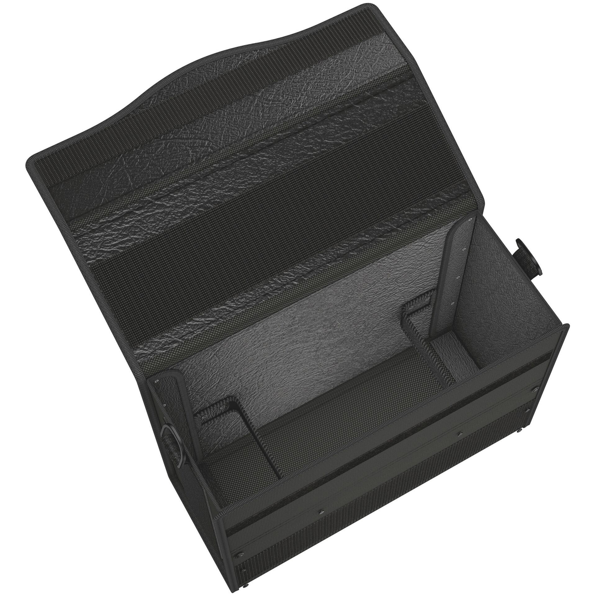 The Wera 2go 2 XL Tool Container with extra low-profile compartments, with its hook and loop fastener system and its compactness, is the ideal solution for individual and convenient tool transport. The inner and outer hook and loop fastener zones provide extremely high flexibility and space utilization. This fits an incredible amount of tools in and on the container. Wera 2go 2 makes for light luggage, because only the essential tools are taken. The robust and sturdy material protects the enclosed tools from damage and moisture, and increases the service life of the tool container. The padded and adjustable wide belt and the close-fitting position of the container provide a comfortable fit. The hands remain free during transport. Including one Wera 2go 4 holder with individually adjustable hook and loop fastener divider for screwdrivers and other tools. Four of these holders can be stowed effortlessly.