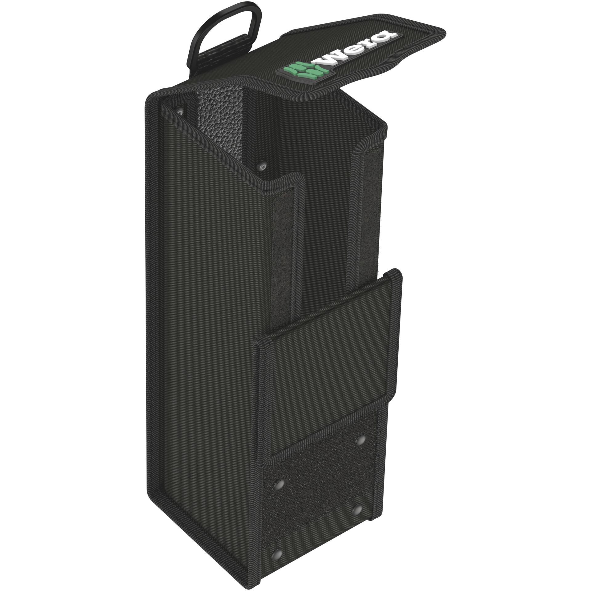A sturdy, robust tool box, with carrying handle, for storage and transport of long tools and spare parts. High resistance against cuts and stabs. With hook and loop fastener zones for docking to the Wera 2go system. The compact Wera 2go tool box can be filled with tools and spare parts and docked onto Wera 2go 2 (container). Thus the storage space is easily extended.