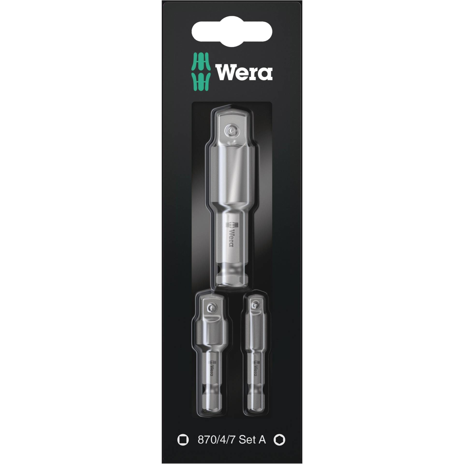 Tool shank set with external square drive from Wera. For machine-operated sockets. Drive: 1/4" hexagonal.