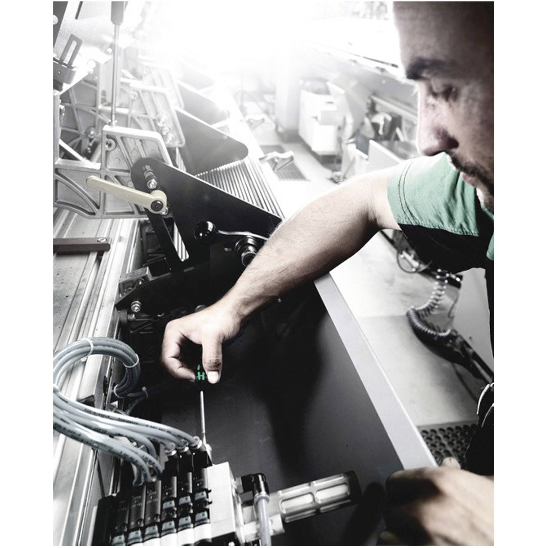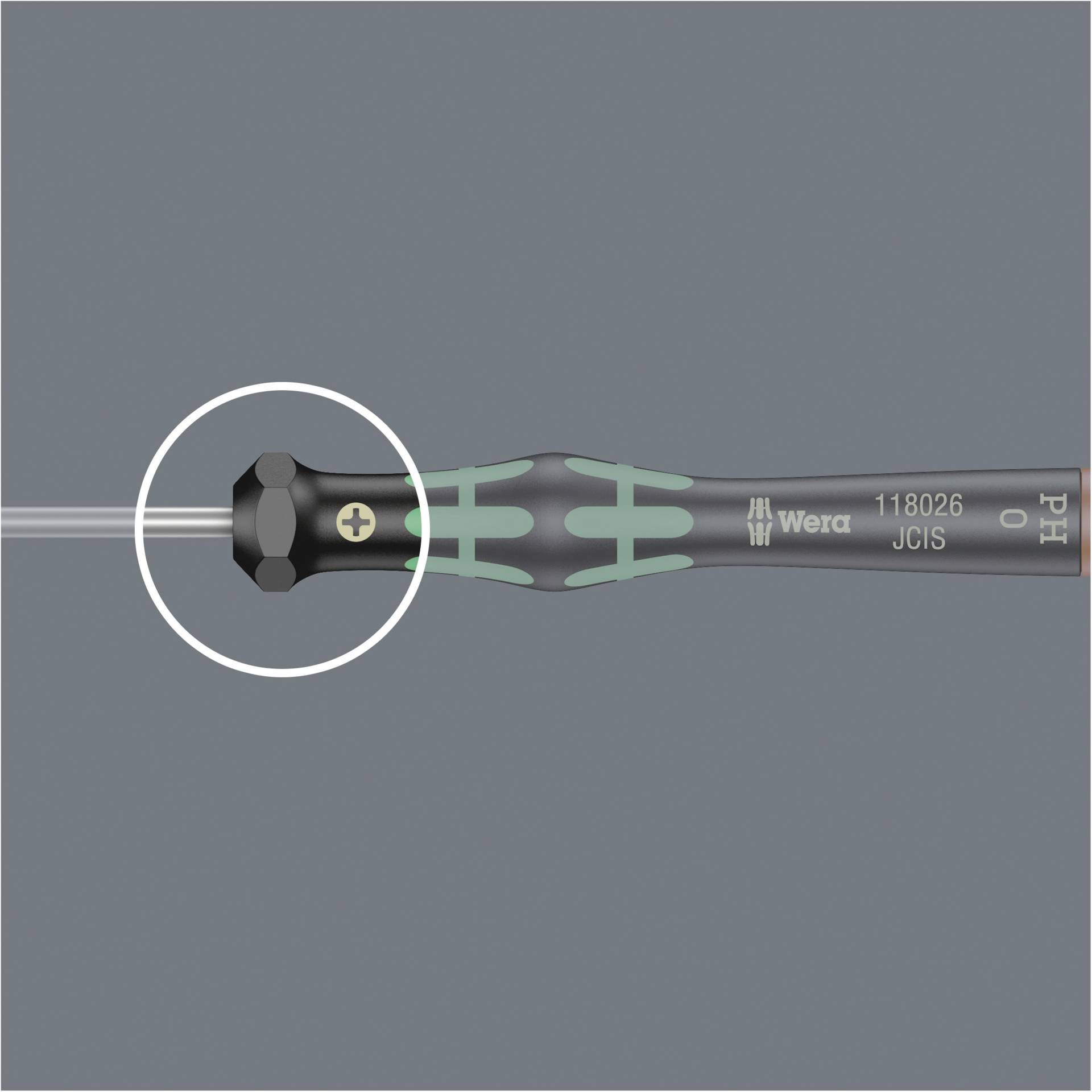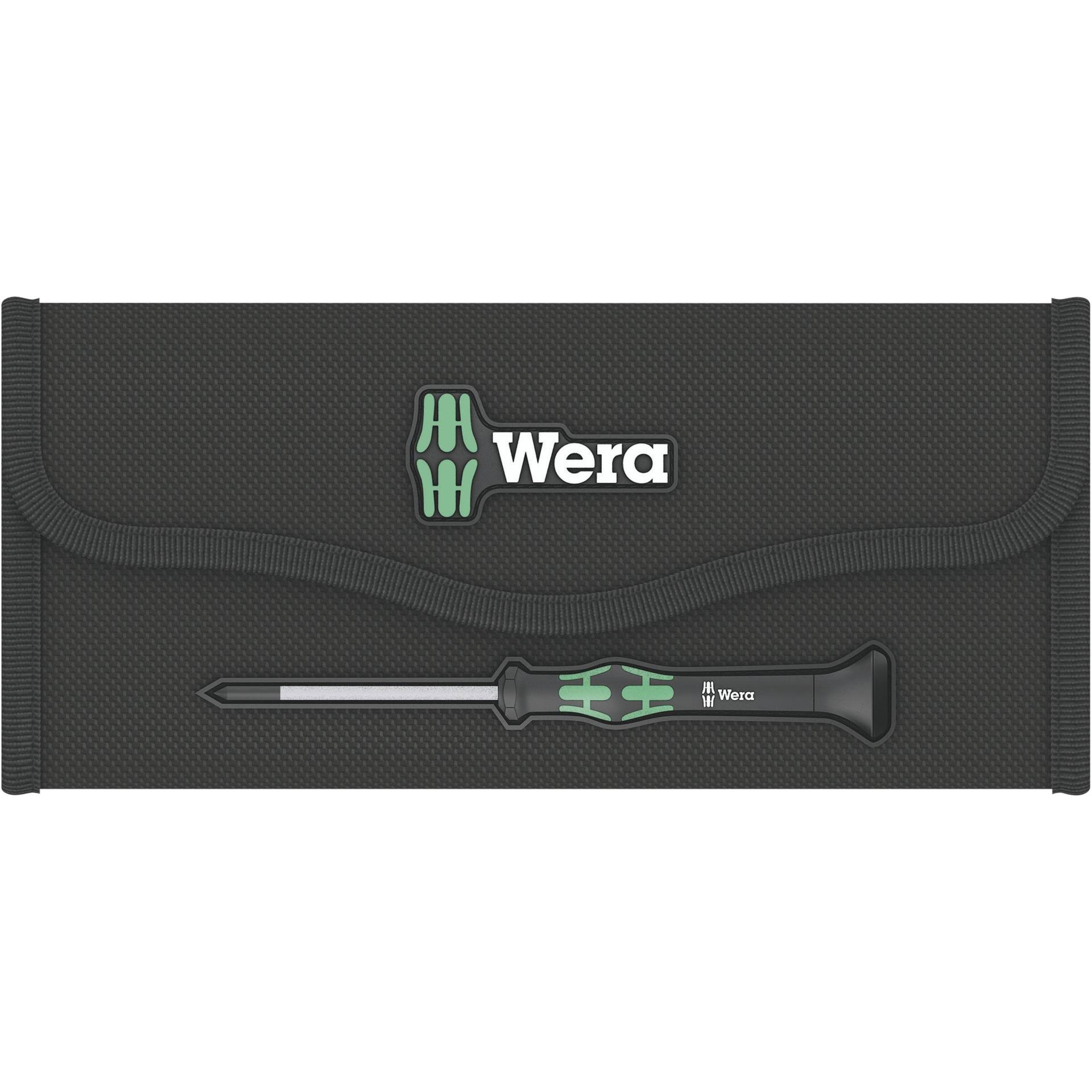 Visokokvalitetni Wera Micro set odvijača za precizne mehaničke vijčane spojeve, Munjevito brzo okretanje moguće je oslanjanjem ruke na rotirajuću kapu i zonom velike brzine ispod rotirajuće kape, Dugotrajno hvatanje više nije potrebno, Zona snage s integriranim mekim zonama osigurava prijenos visokih momenta otpuštanja i zatezanja, Precizna zona za ispravan kut rotacije tijekom radova podešavanja, Vrh Wera Black Point nudi savršeno prianjanje i optimiziranu zaštitu od korozije, Uključuje praktični stalak za pregledno spremanje odvijača,